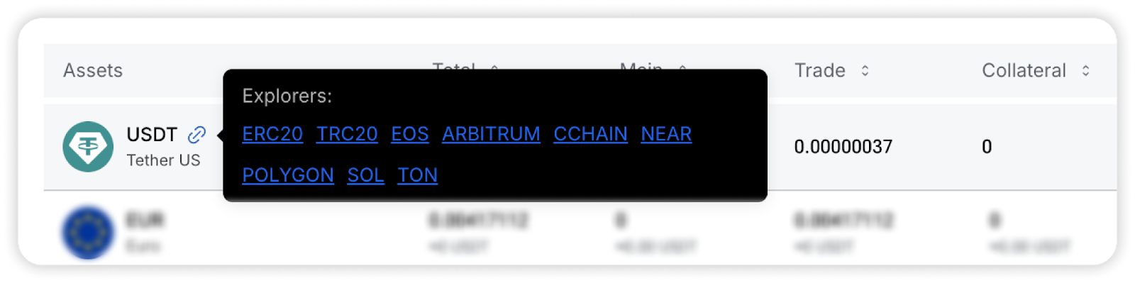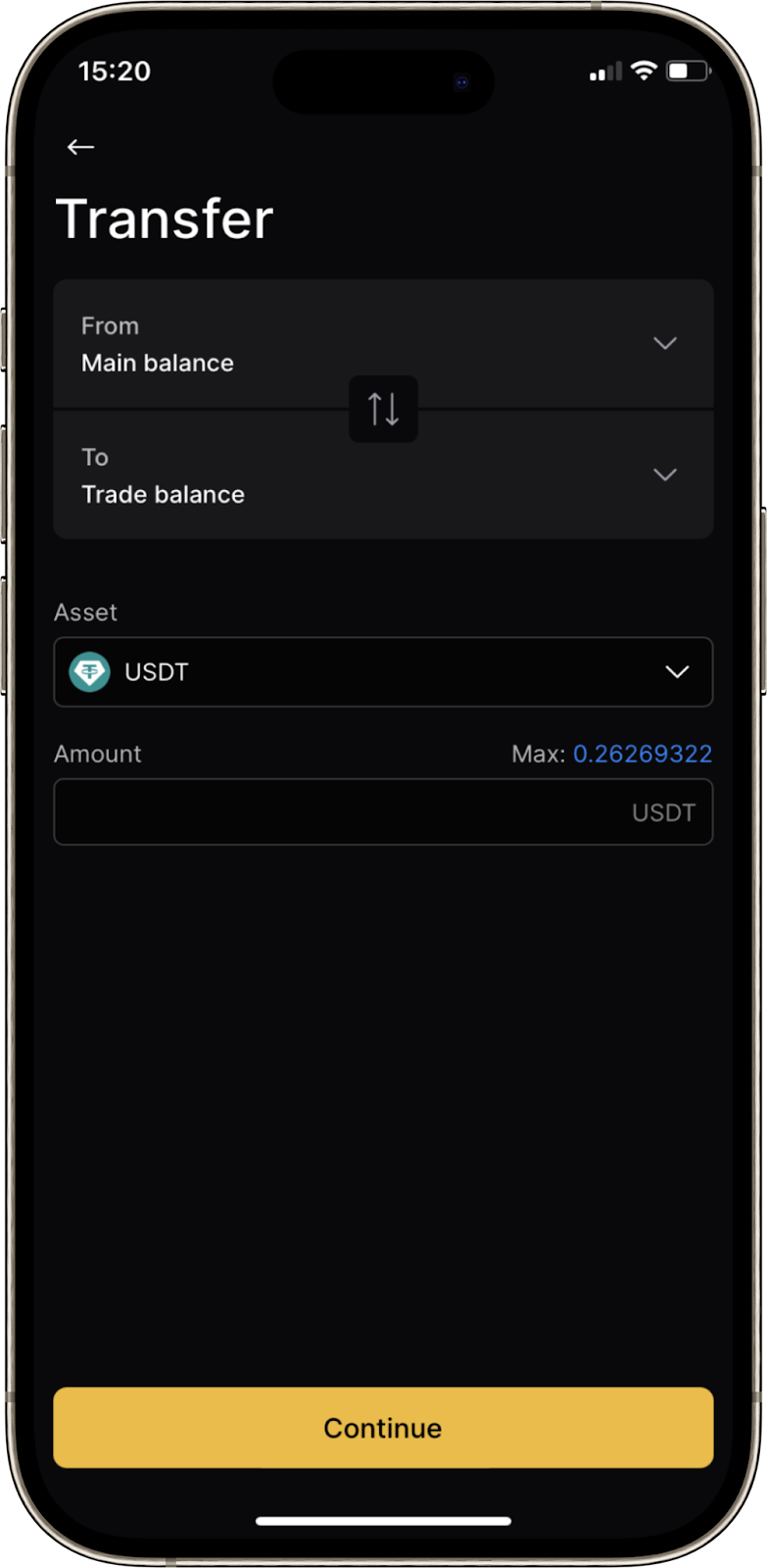 Please note: even if your funds are not on the "Main" balance, the system will automatically prompt you to transfer them from the "Trade" or "Collateral" balance during the withdrawal confirmation.