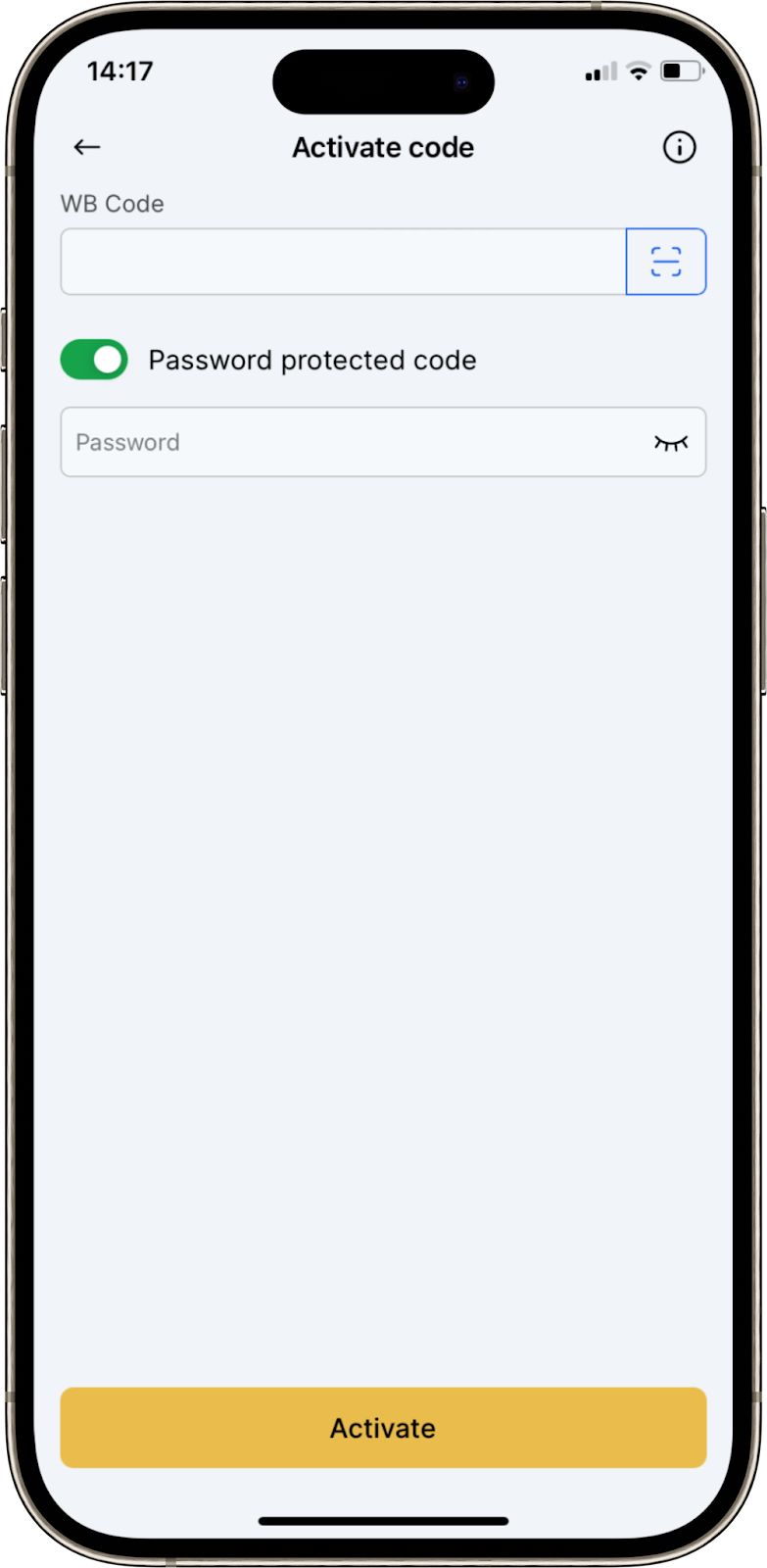 How to activate a WB code in a mobile app?