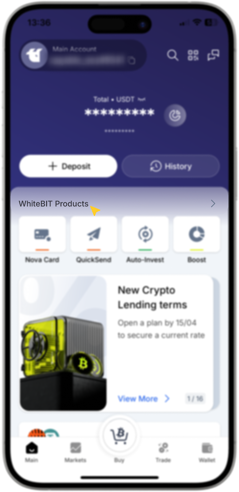 in the lower right corner of the screen (in the upper right corner of the WhiteBIT app, click