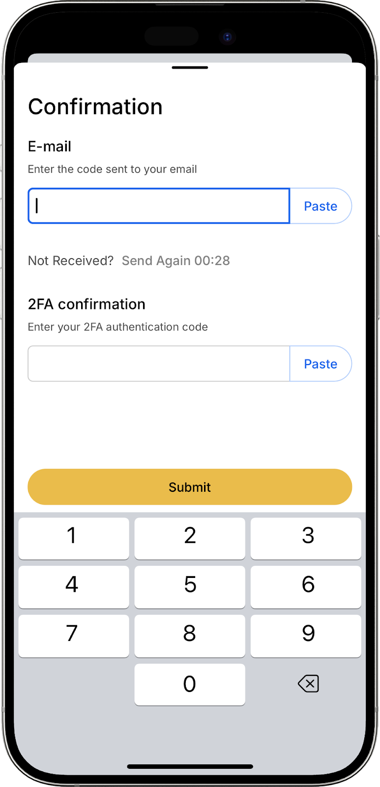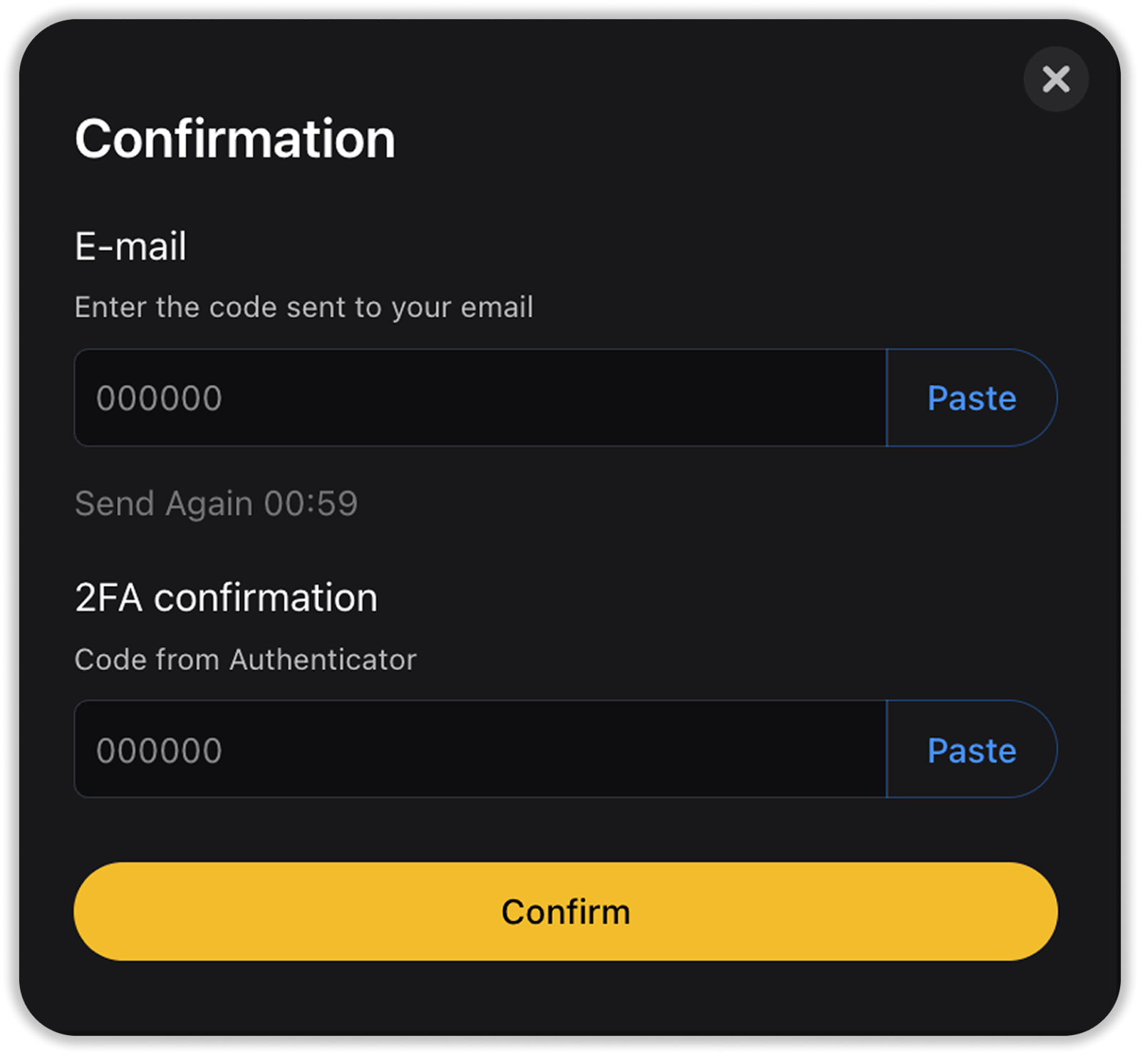 - Confirm the creation of the WB code by entering the 2FA code and the confirmation code sent to your email. Then click “Confirm”;
