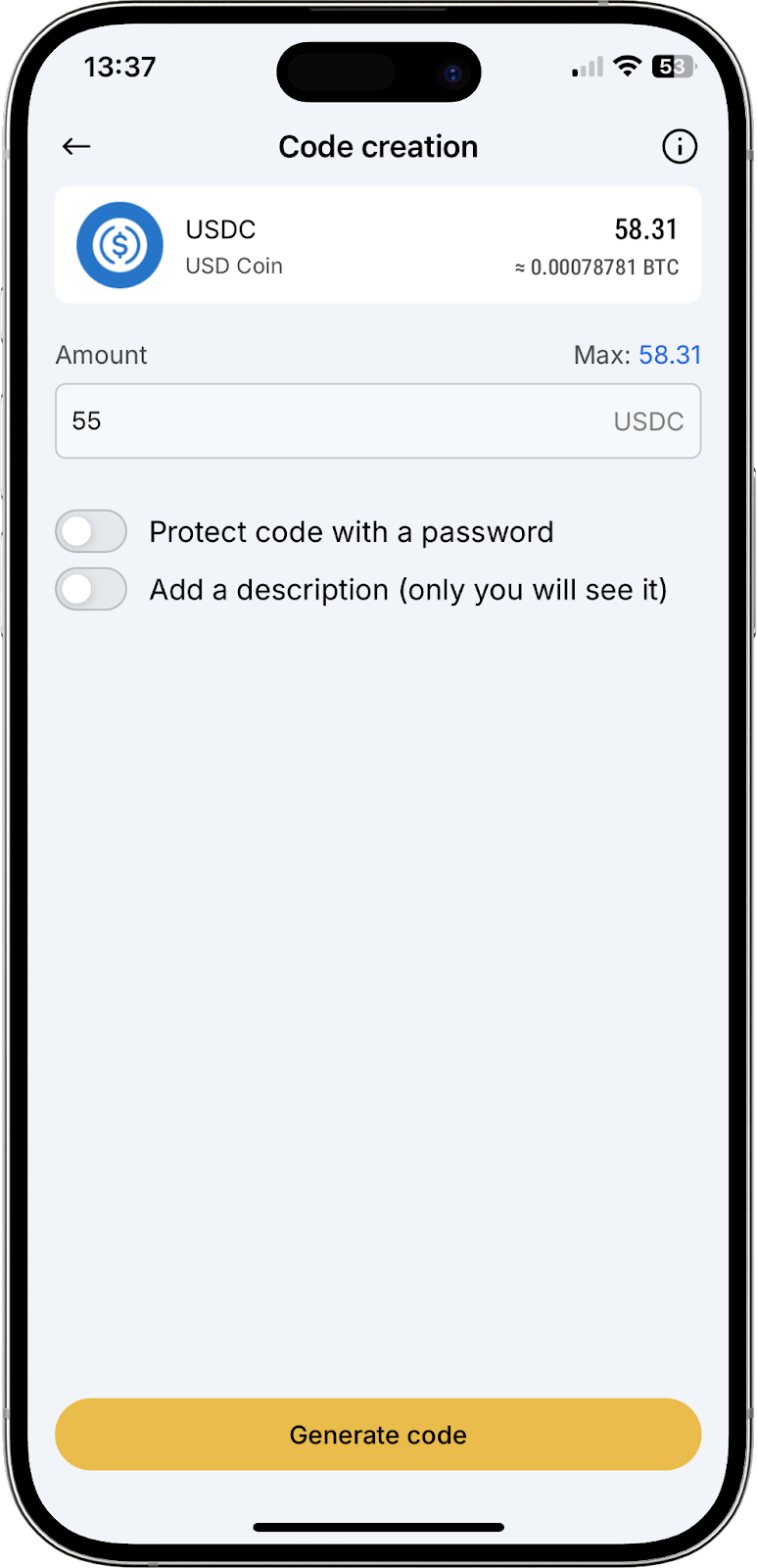 Please note: the creation of WB codes is only available for cryptocurrency, and you need to pass identity verification (KYC) to use them.