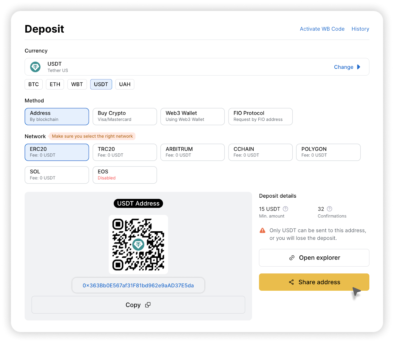In this article, we will take a closer look at the process of depositing cryptocurrencies using the “Address” method. Let's try to deposit USDT!