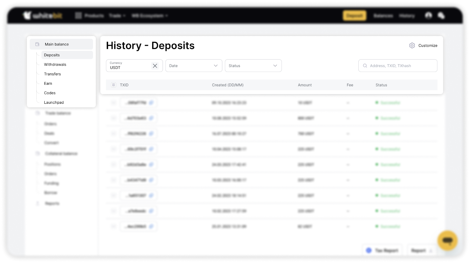 You can see all deposit details (status, amount, date, time, transaction ID, fee, link to the transaction in the explorer) in the “Wallet”“History” tab.