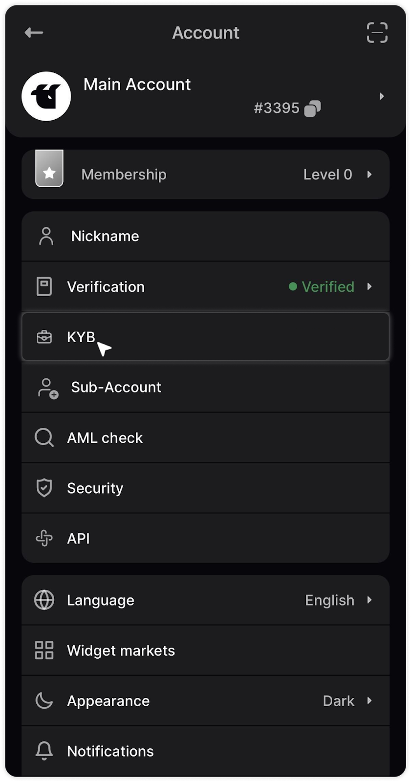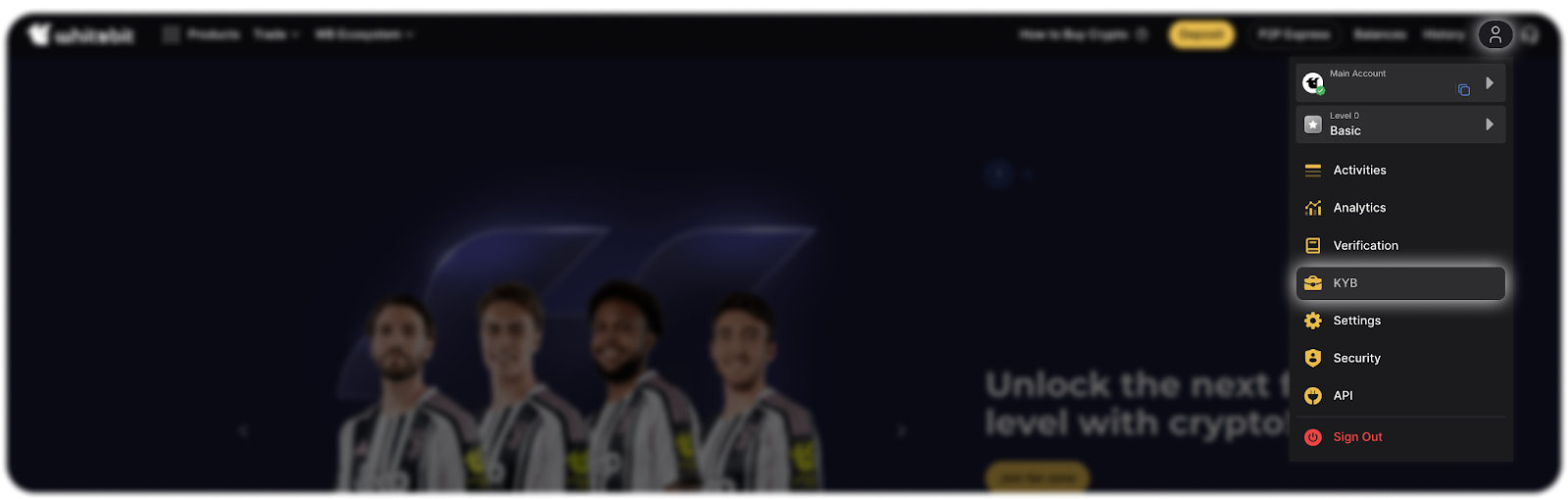 KYB is a verification process for users who are applying for a business account on WhiteBIT. Successful completion of KYB is a mandatory requirement for opening a corporate account on our exchange. In this article, we will provide you with step-by-step instructions on how to carry out this procedure.
