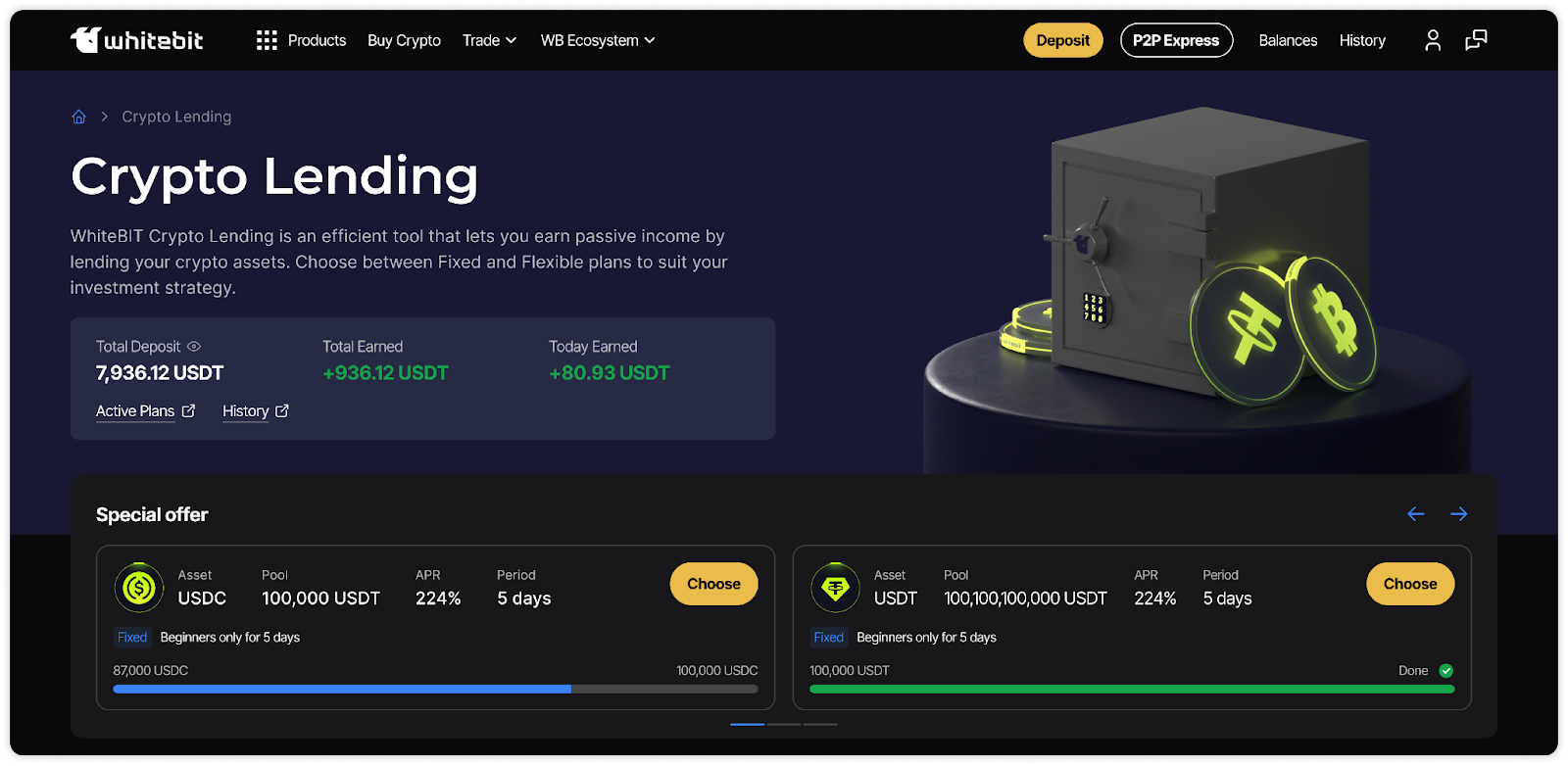 Crypto Lending is an alternative to a bank deposit, but in cryptocurrency and with more features. You store your cryptocurrency on WhiteBIT, and the exchange uses your assets in margin trading.