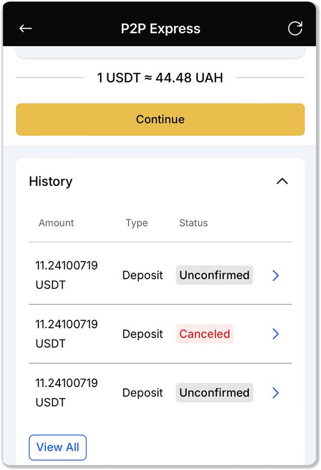 P2P Express exchange of UAH to USDT in the app