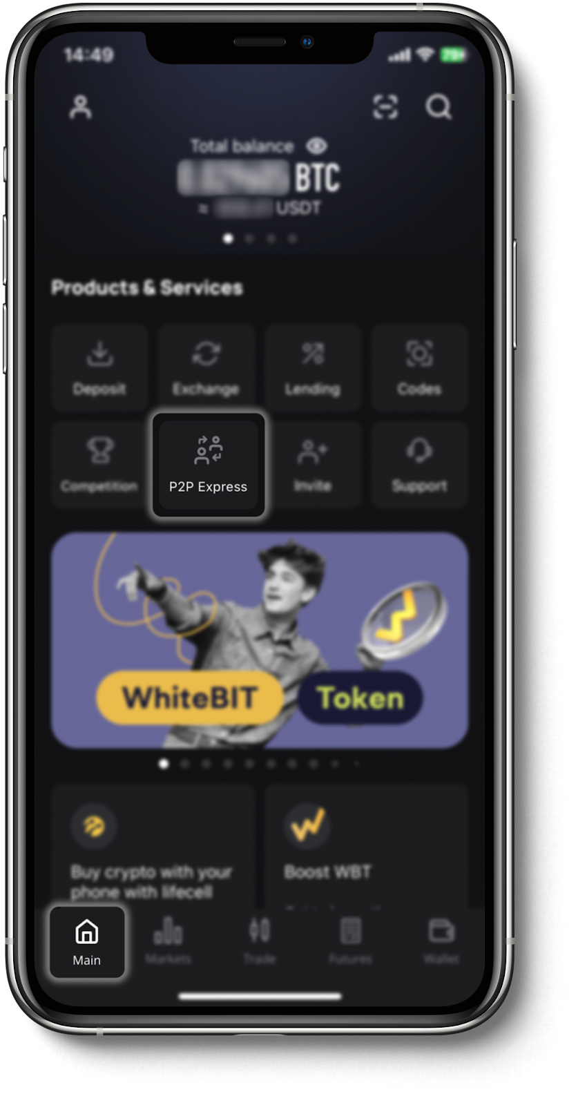 1. Navigate to the balance tab. To use the functionality, select the "P2P Express" function on the "Main" page.