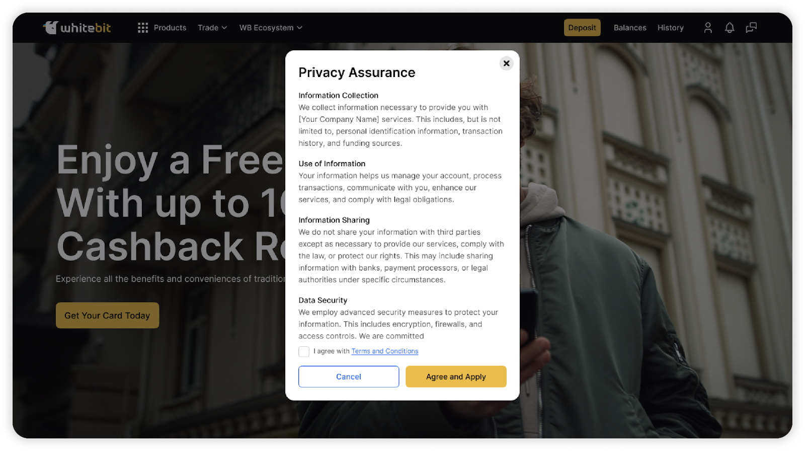 Payment card Terms & Conditions are available via this link: https://cdn.whitebit.com/card/tos.pdf.