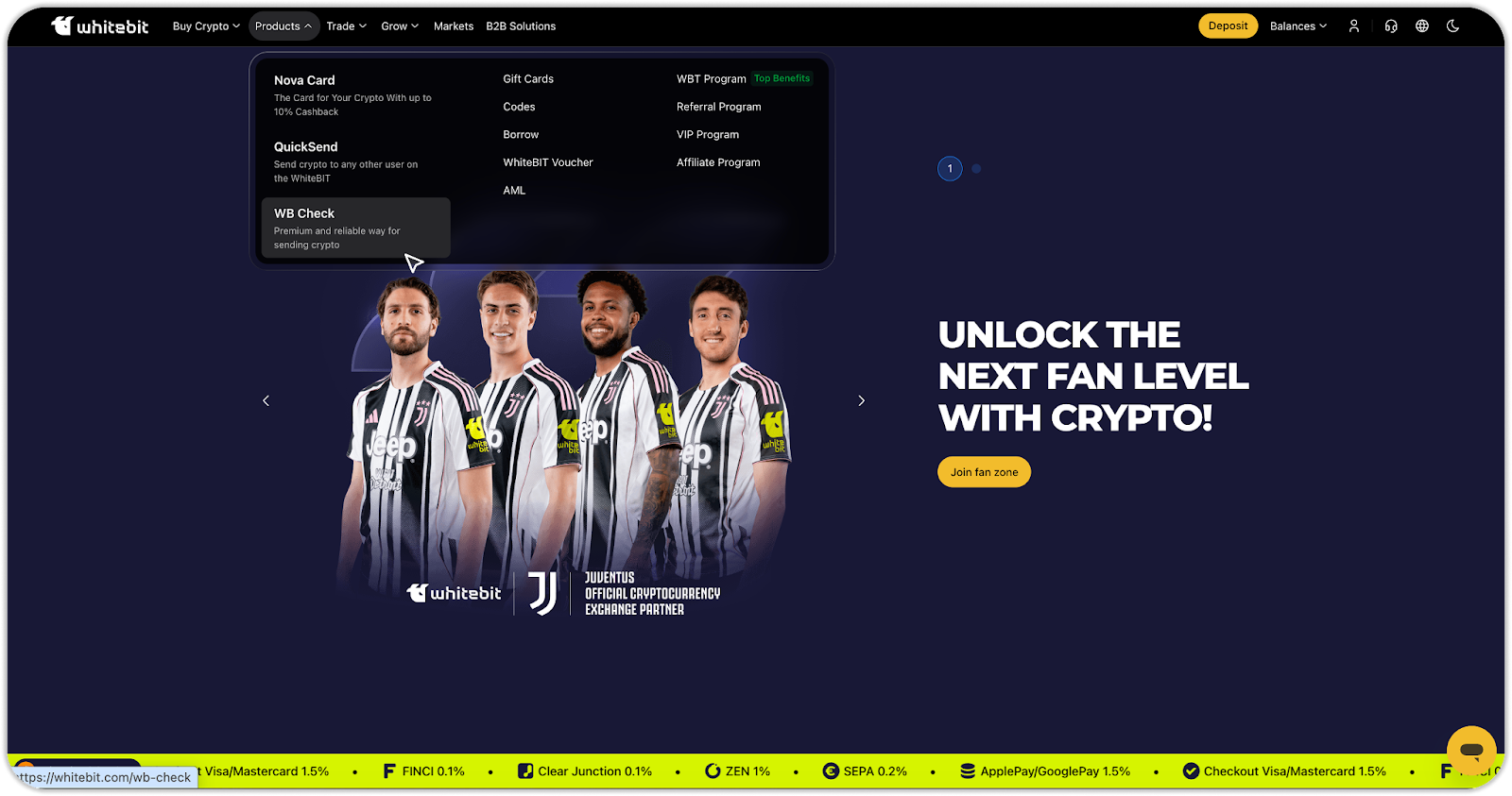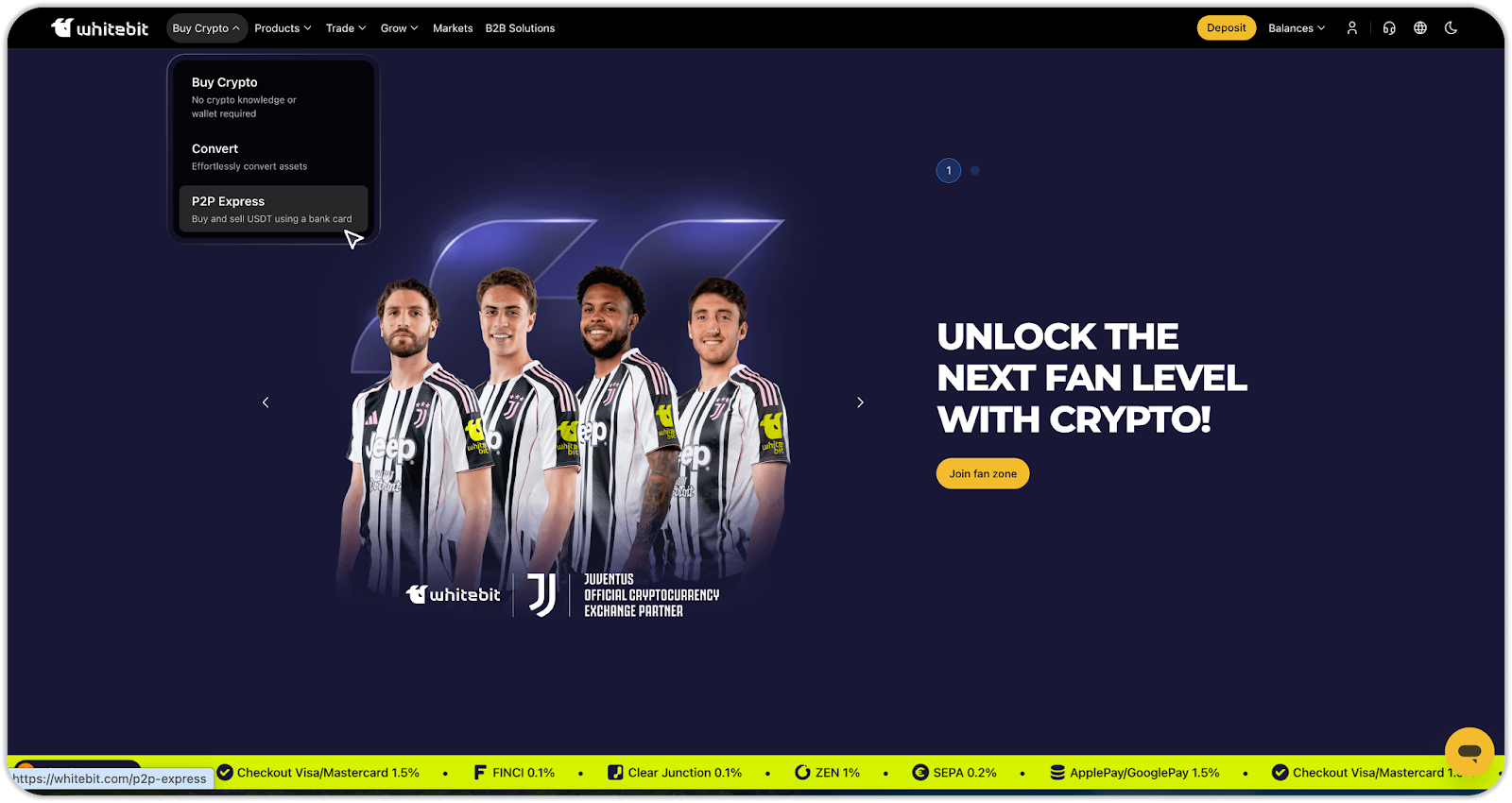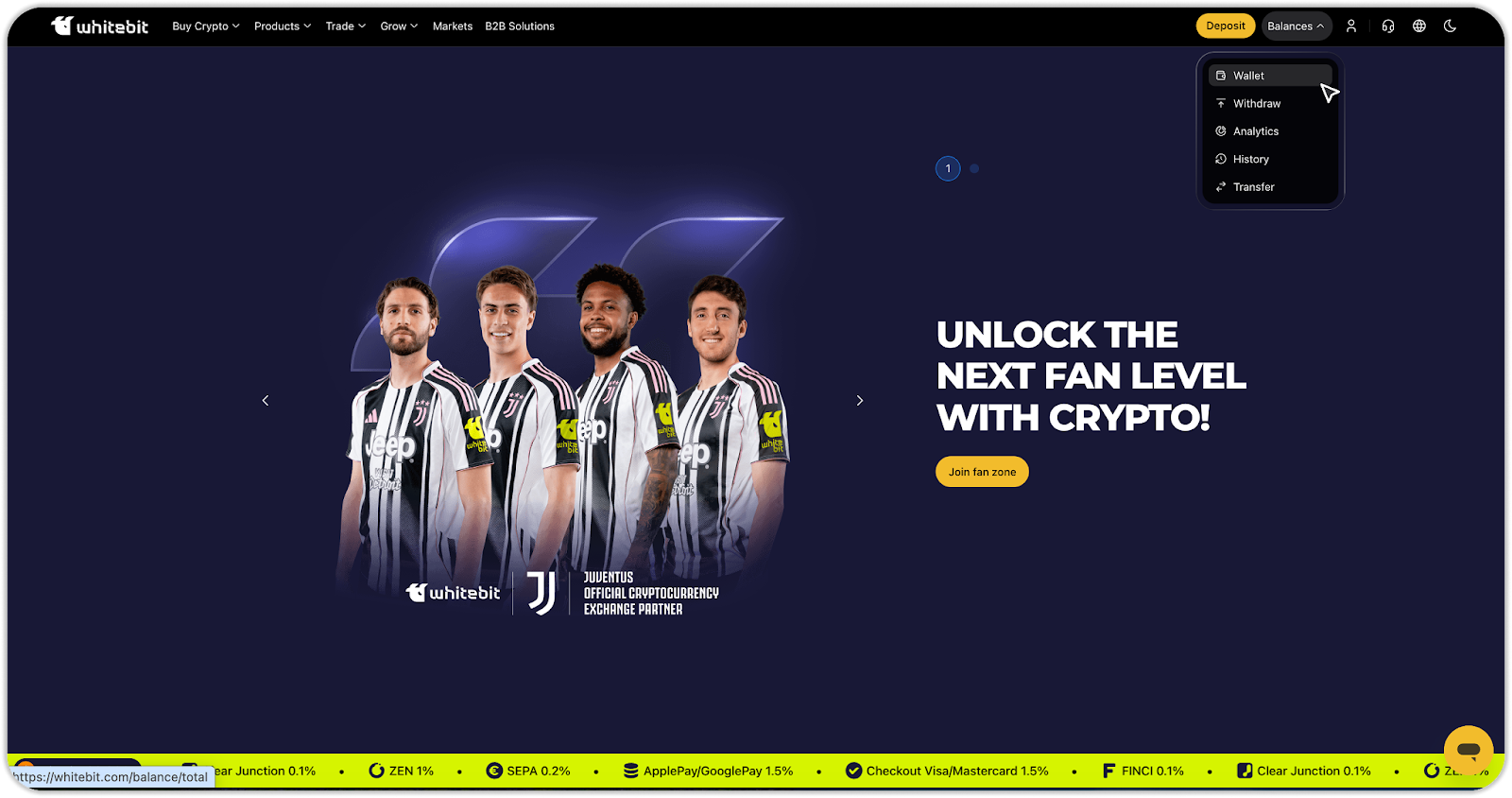 - Depositing via Checkout Visa/Mastercard on the WhiteBIT website