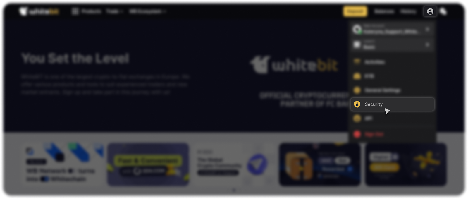 in the lower right corner of the screen (in the upper right corner of the WhiteBIT app, click