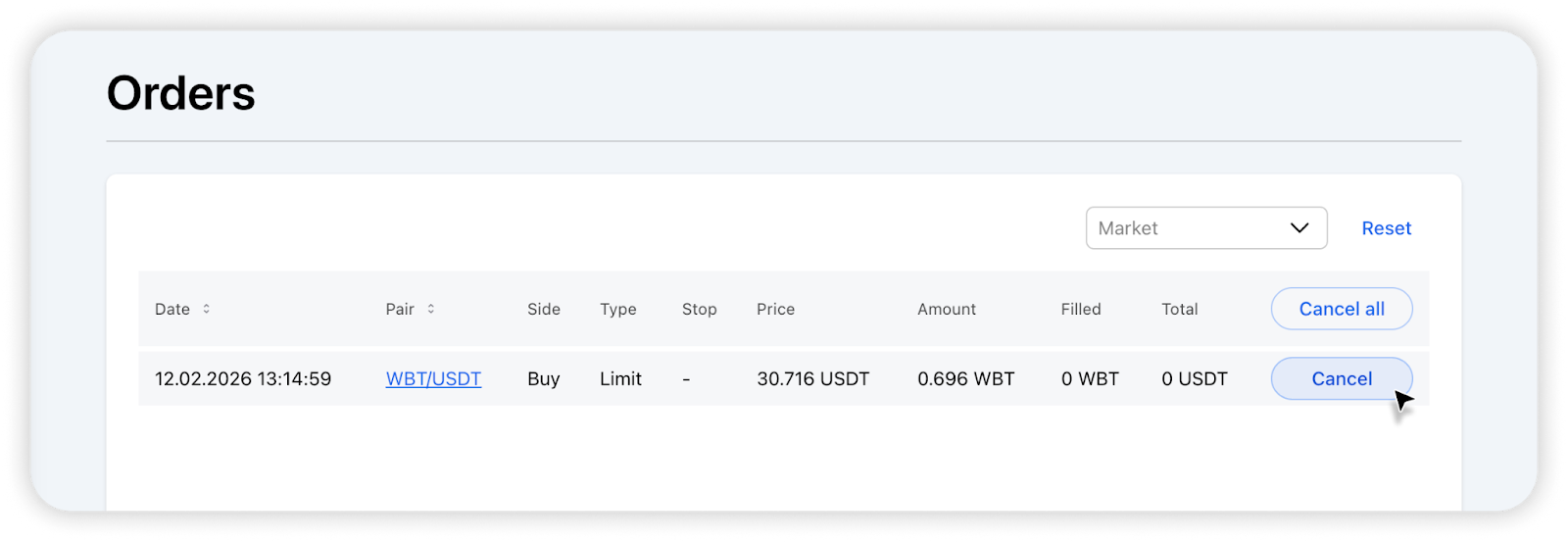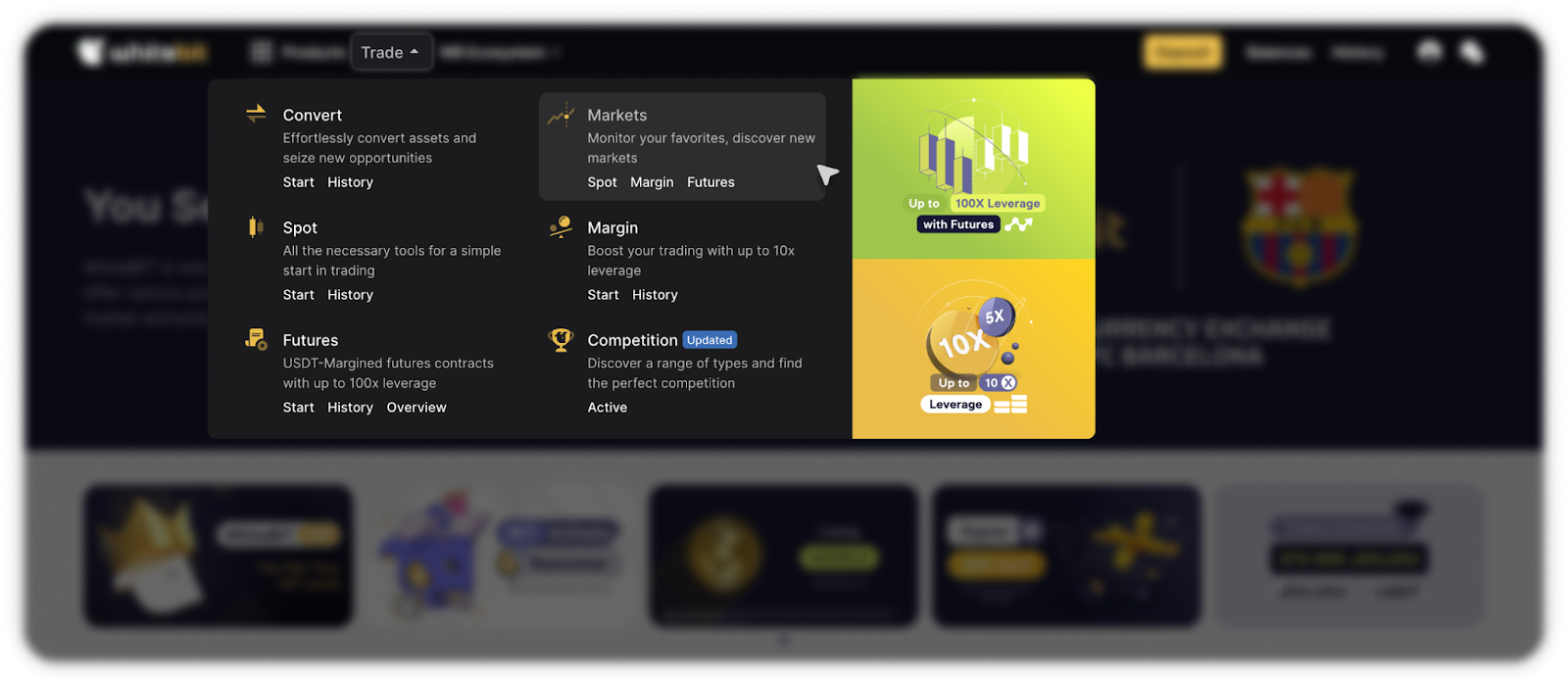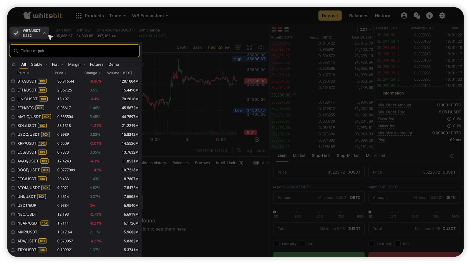 As mentioned in the article about order types on WhiteBIT, you can use any of them depending on your trading goals and strategies. Let's take a practical look at how to work with orders in the web version of the exchange.