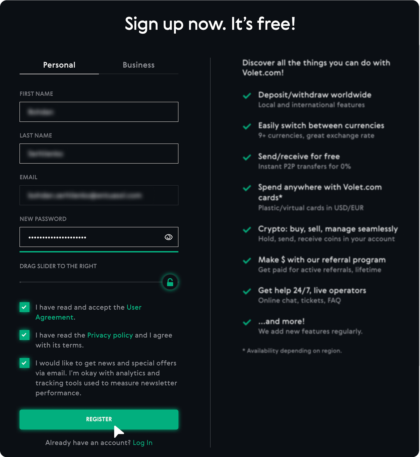 - Acceda al sitio web de Volet.com utilizando el enlace correspondiente e ingrese todos los datos necesarios para el registro;