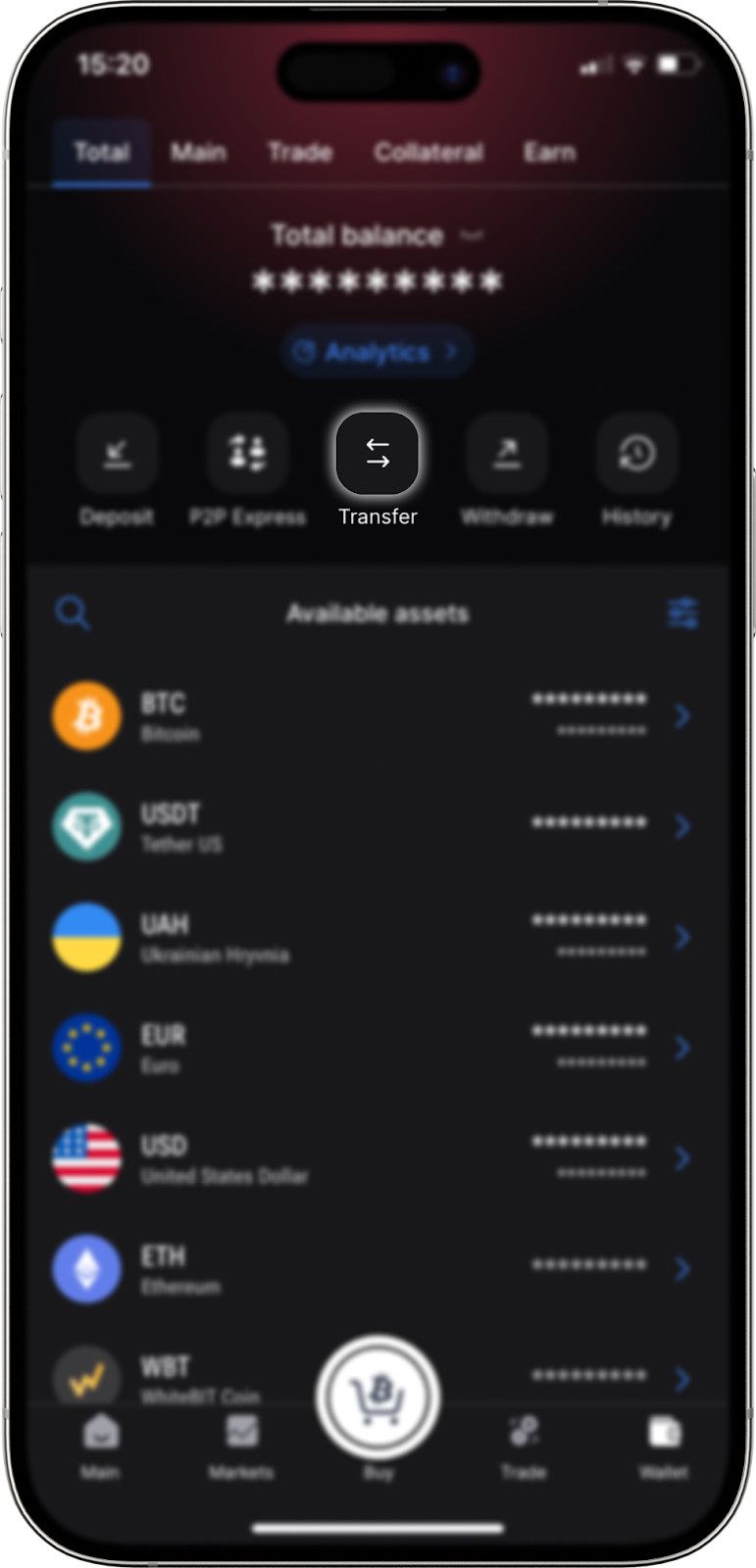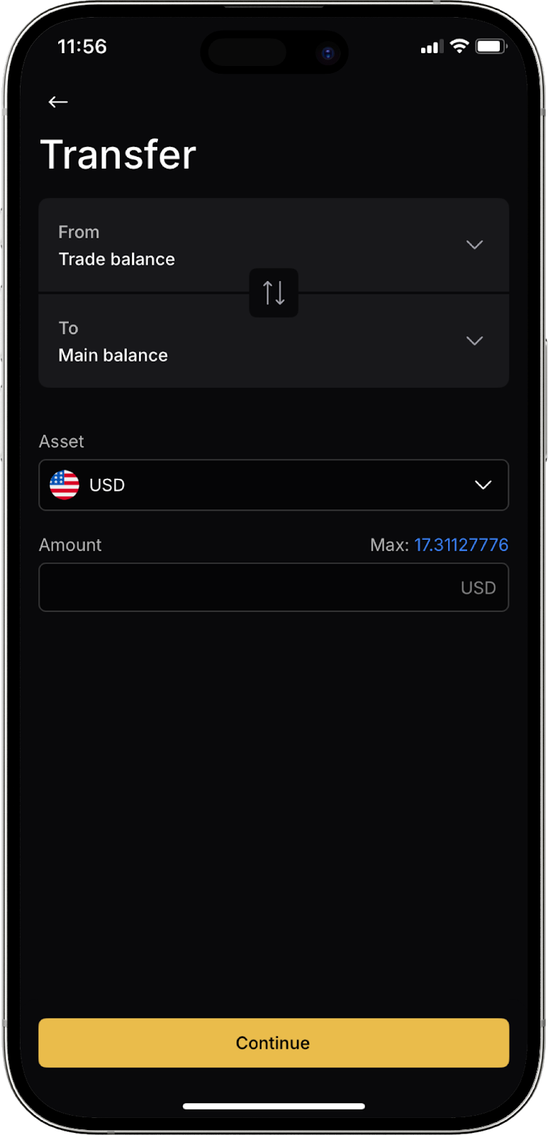 Tenga en cuenta que, aunque sus fondos no estén en el saldo Principal, al confirmar el retiro el sistema le ofrecerá automáticamente transferirlos desde el saldo Trading o Colateral.