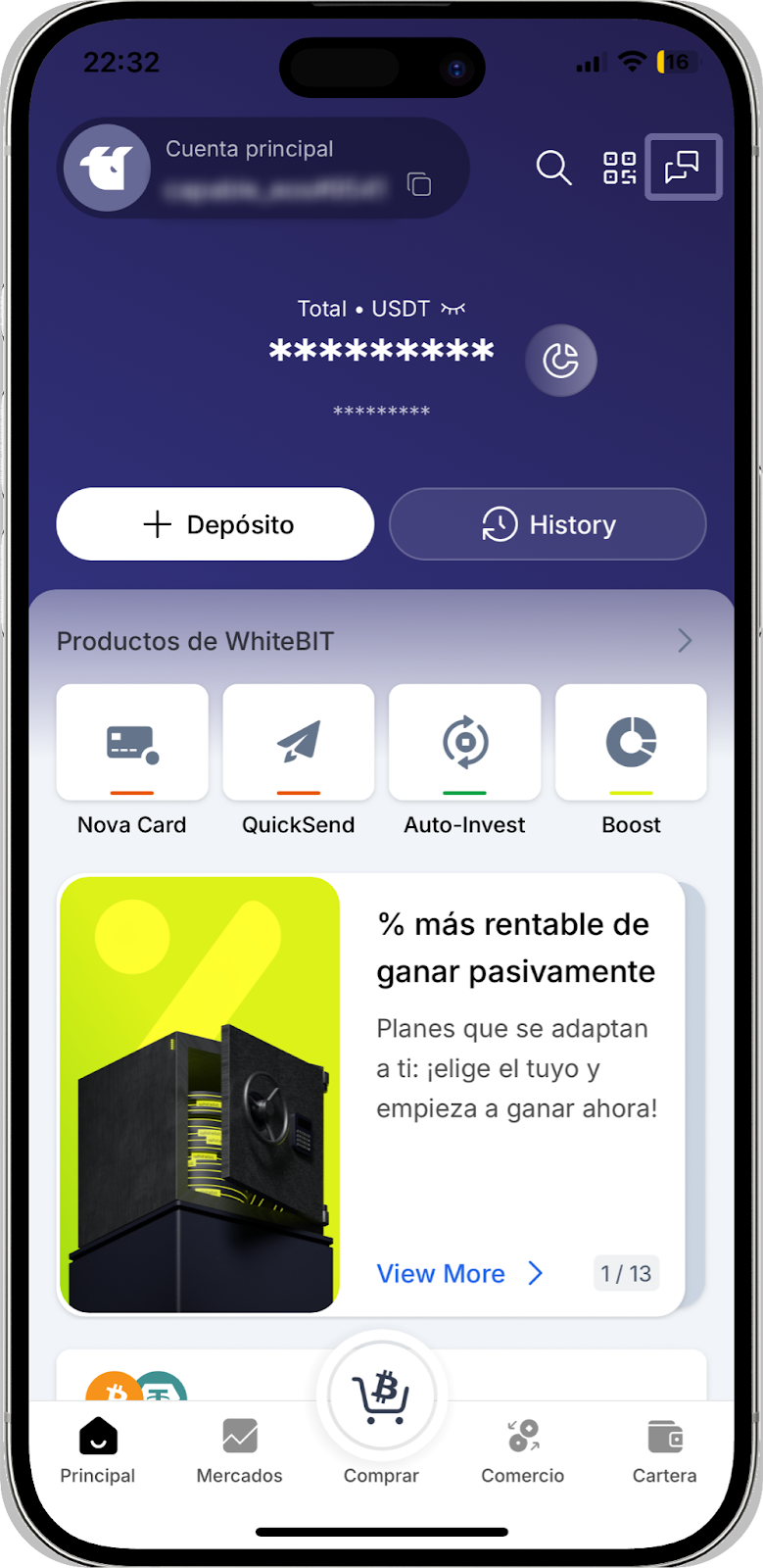 En la aplicación móvil de WhiteBIT