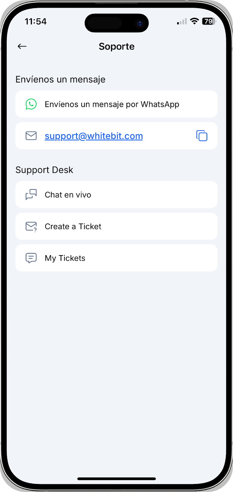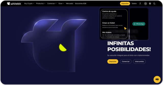Importante: El equipo de soporte de WhiteBIT solo asesora sobre cuestiones relacionadas con la funcionalidad del intercambio y no proporciona recomendaciones comerciales.