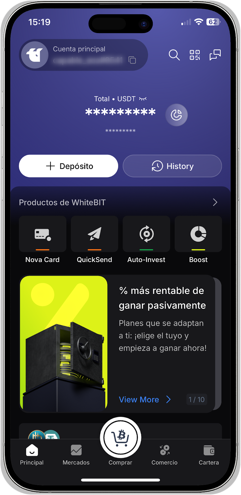 ¡Listo! En la sección "Cartera" > "Historial" encontrará los detalles de su pago en la pestaña "Principal" > "Depósitos".