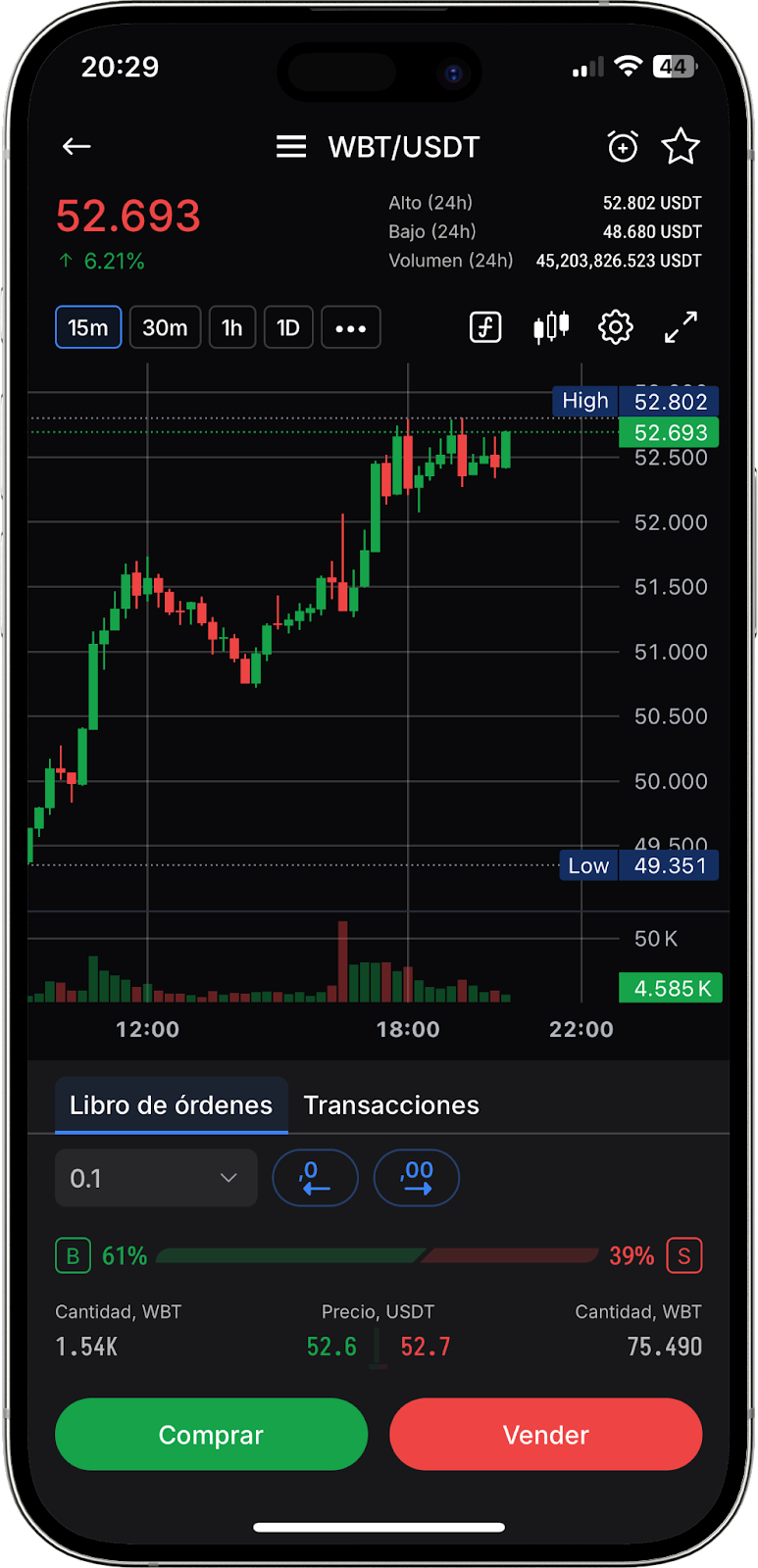 Para crear una orden con BBO en nuestra aplicación móvil: