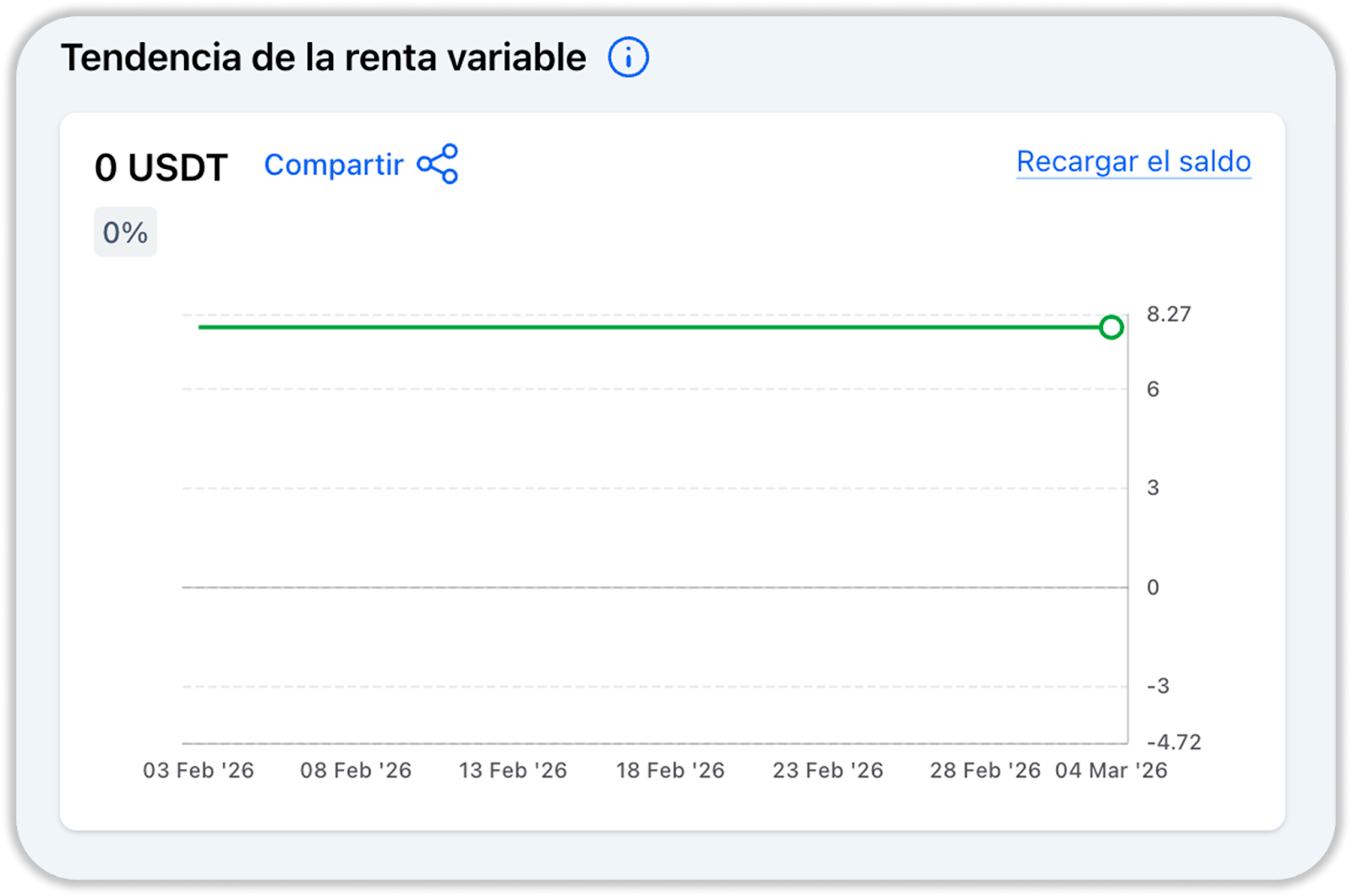 Pantalla "Equity Trend" (Tendencia de Equidad): Esta visualización representa las tendencias de cambio en el balance general a lo largo del tiempo. Permite a los usuarios identificar patrones y fluctuaciones en el balance de su cuenta, lo que facilita la toma de decisiones estratégicas. Además, los usuarios pueden acceder a la página de recarga de cuenta directamente desde la pantalla "Tendencia de Equidad", lo que facilita el proceso de agregar fondos cuando sea necesario.