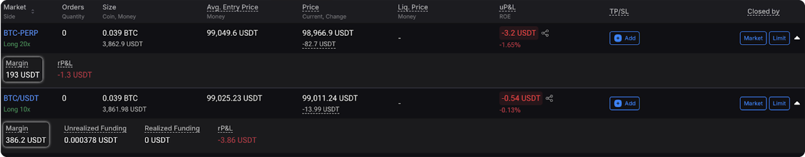 Supongamos que tiene una posición con pérdidas en el par BTC/USDT y varias órdenes limitadas en otros mercados, como órdenes de compra en ETH/USDT. Cuando el sistema detecta un Margin Call en su posición con pérdidas, las órdenes limitadas en ETH/USDT se cancelarán automáticamente. Esto libera los fondos reservados para esas órdenes y los redirige para aumentar el colateral de la posición con pérdidas.