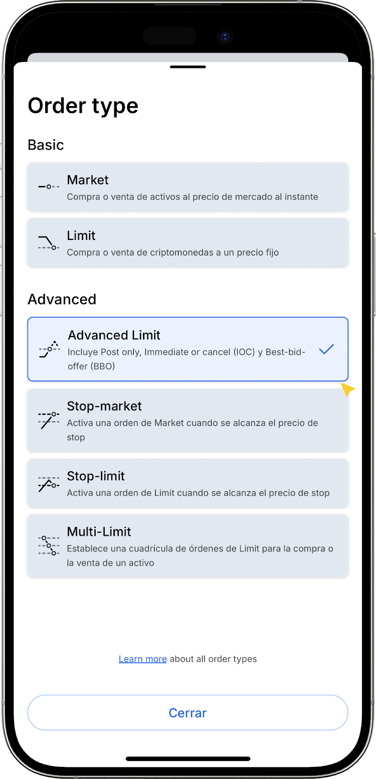 Para información detallada sobre cada tipo de orden y sus diferencias, consulta nuestro artículo sobre tipos de órdenes en exchanges y sus características.