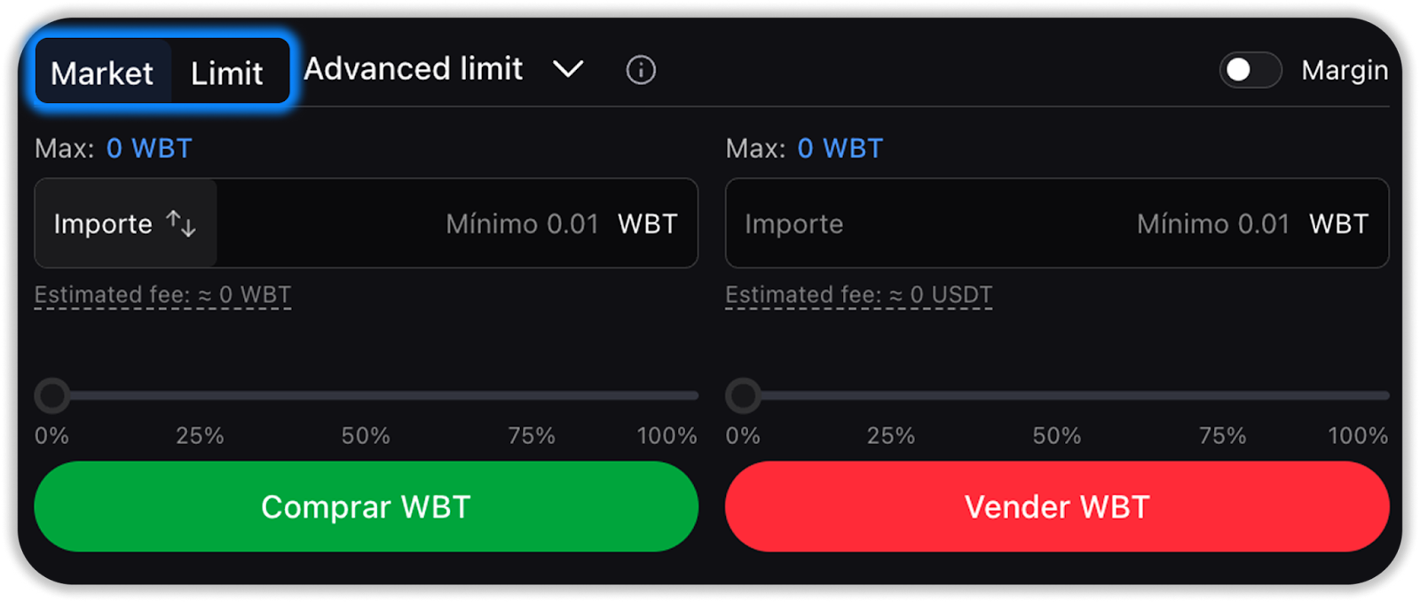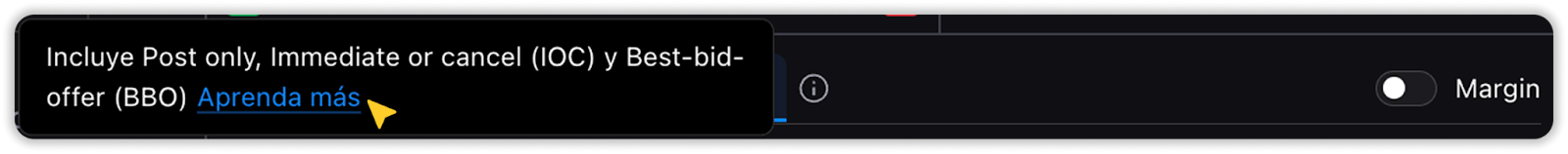 - Límite avanzado (Orden limitada con condiciones Post-only, BBO o IOC)