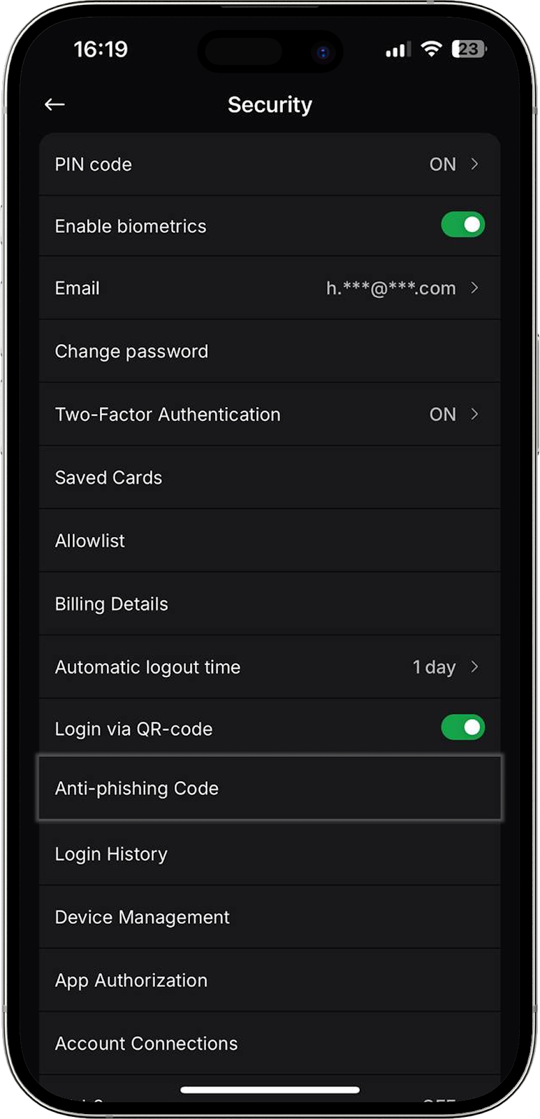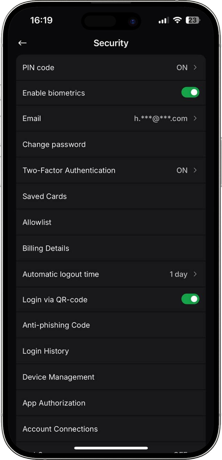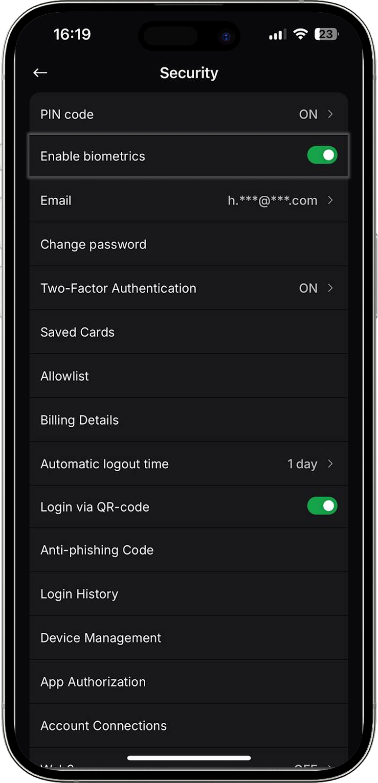 Otro método conveniente de acceso al exchange para los usuarios de nuestra aplicación móvil. Ahora puede iniciar sesión en su perfil en la versión web del exchange mediante un código QR. En esta pestaña puede activar o desactivar la función.
