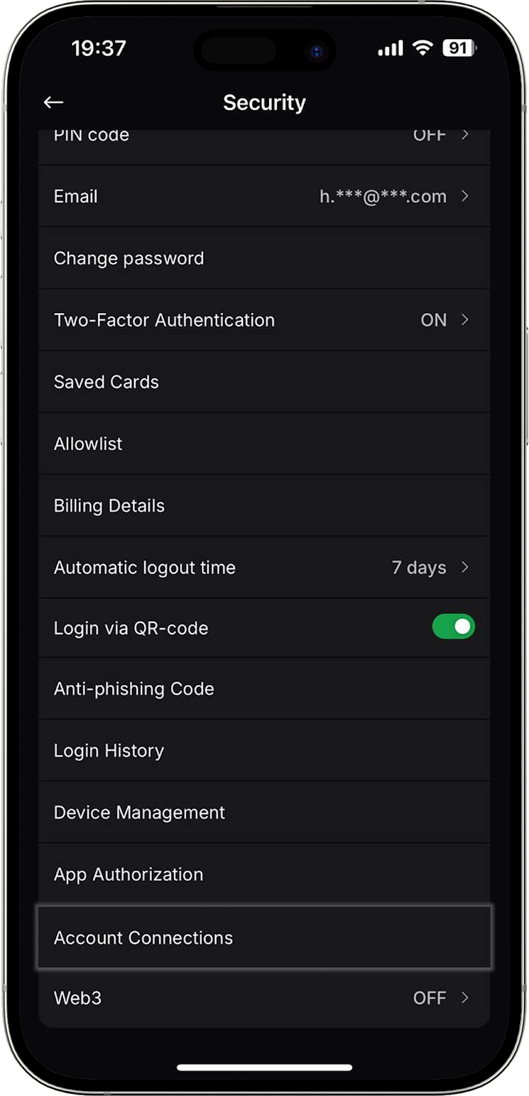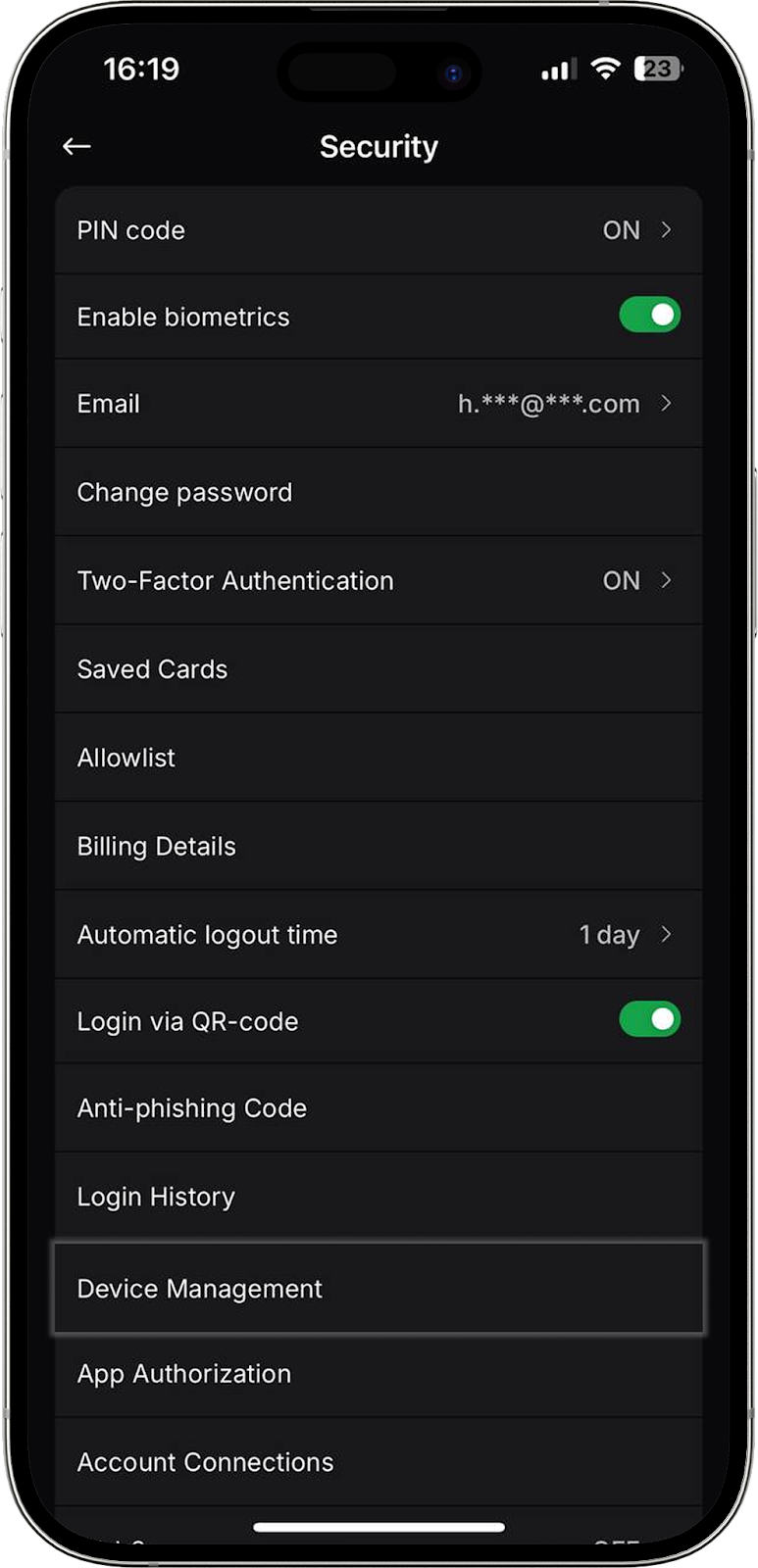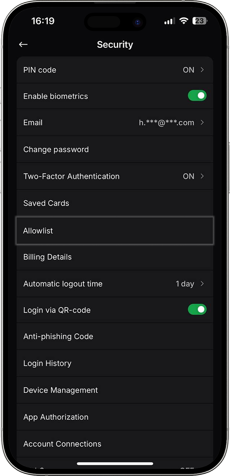 Otro método conveniente de acceso al exchange para los usuarios de nuestra aplicación móvil. Ahora puede iniciar sesión en su perfil en la versión web del exchange mediante un código QR. En esta pestaña puede activar o desactivar la función.