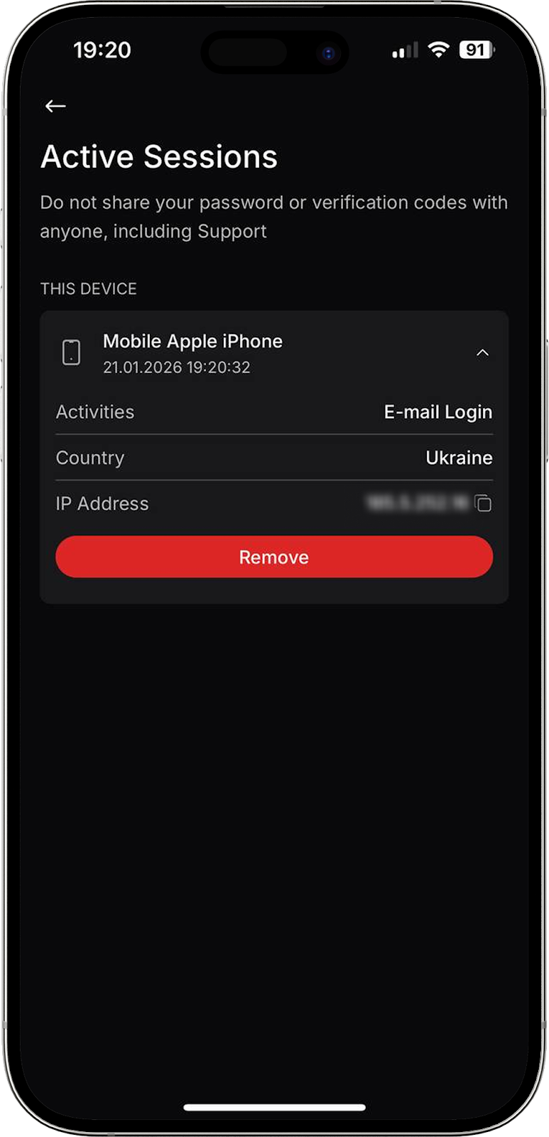 Puede iniciar sesión en su cuenta desde diferentes dispositivos, incluidos teléfonos móviles, tabletas y otros ordenadores. En la sección “Gestión de dispositivos” puede cerrar una sesión específica pulsando “Eliminar” o finalizar todas las sesiones activas en todos los dispositivos a la vez haciendo clic en el icono de la papelera.