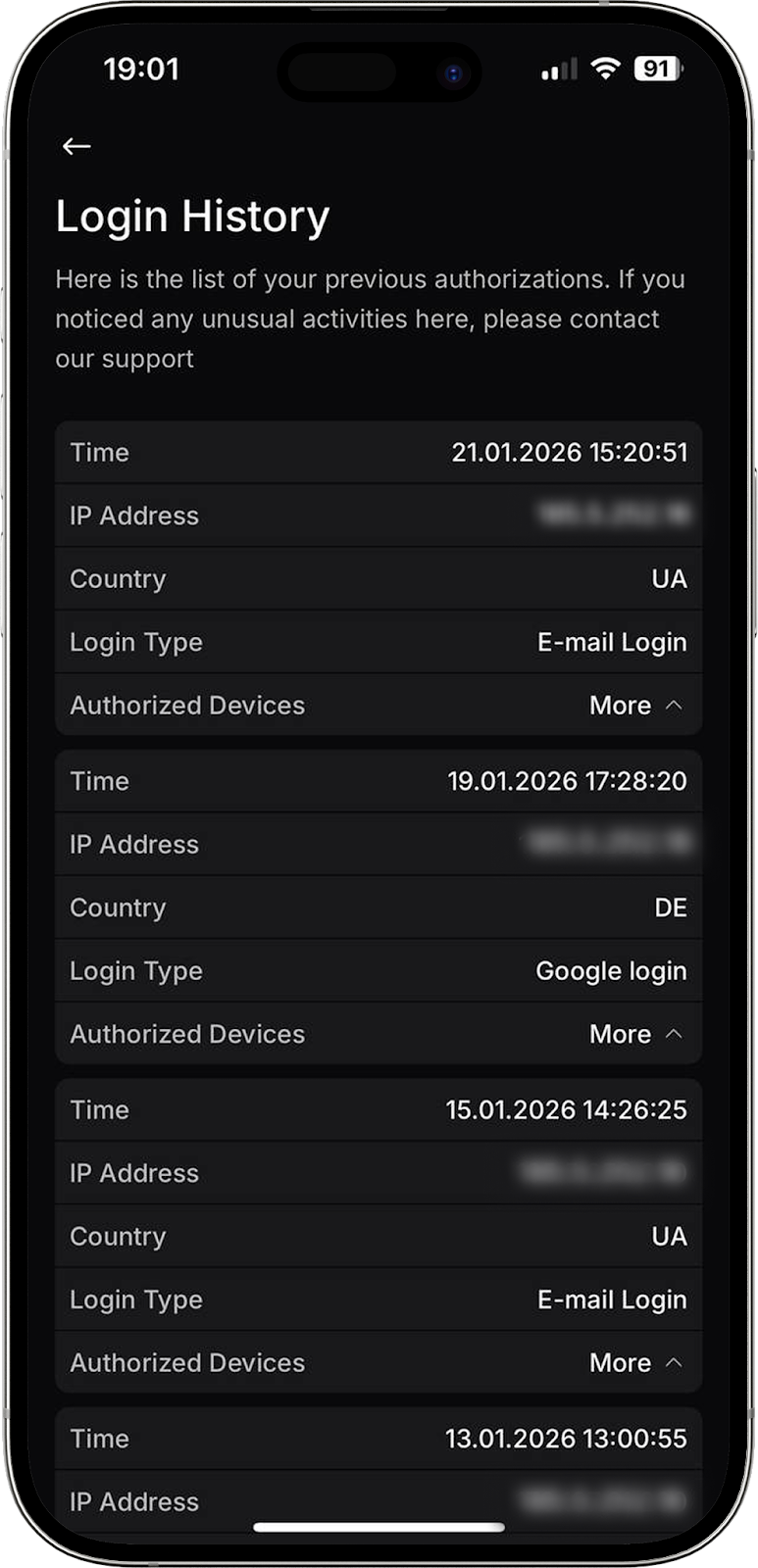 Actualizamos constantemente la funcionalidad de nuestro exchange, añadimos nuevas herramientas y mejoramos las existentes, especialmente cuando se trata de seguridad. Para mantenerle al tanto, hemos preparado una guía de la sección “Cuenta”, para que comprenda todas las posibilidades de configuración de su cuenta y pueda implementar rápidamente casi cualquier ajuste en la aplicación móvil del exchange.