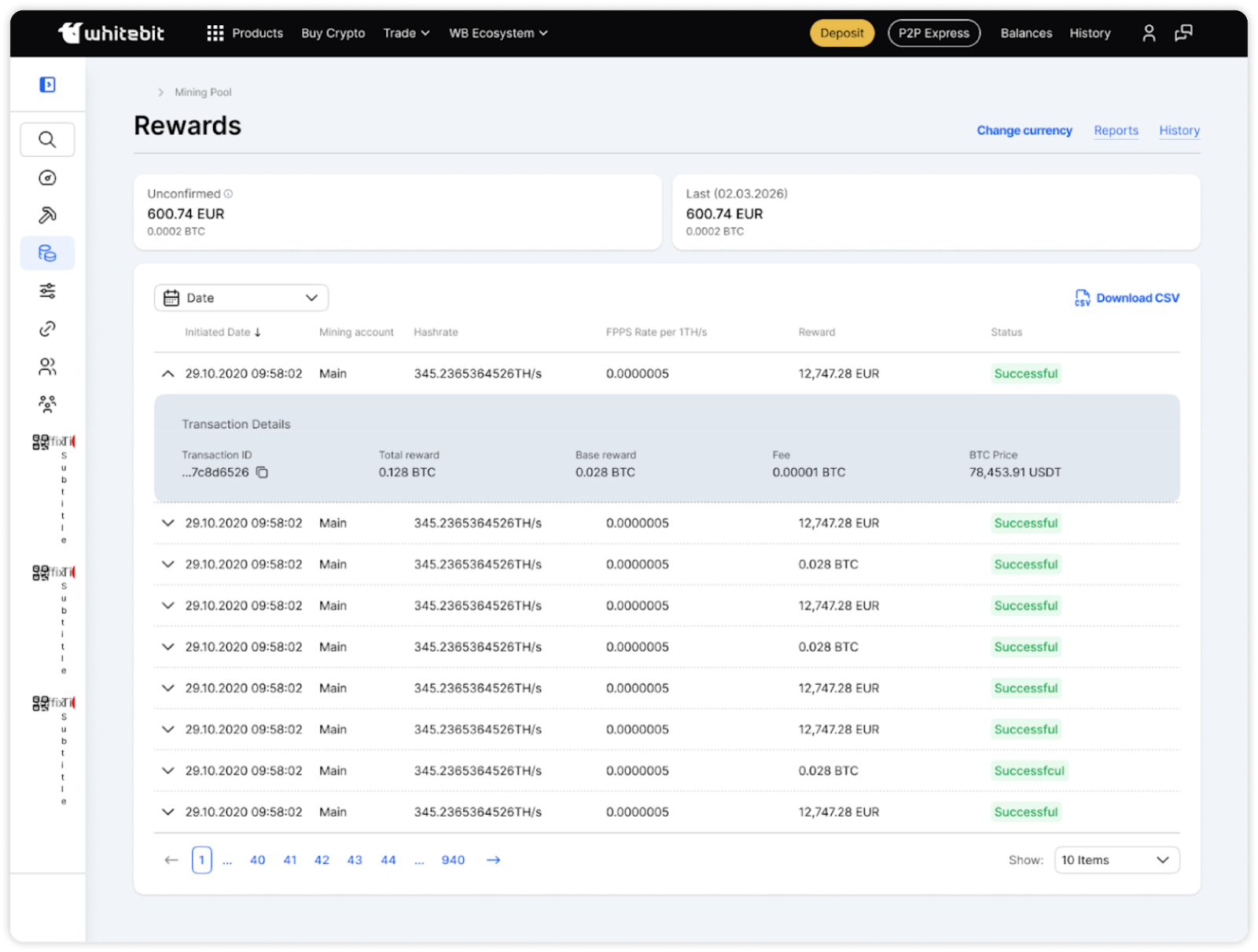 La función de conversión automática permite a los usuarios de WhitePool recibir recompensas de minería en una moneda diferente a BTC (por ejemplo, EUR).