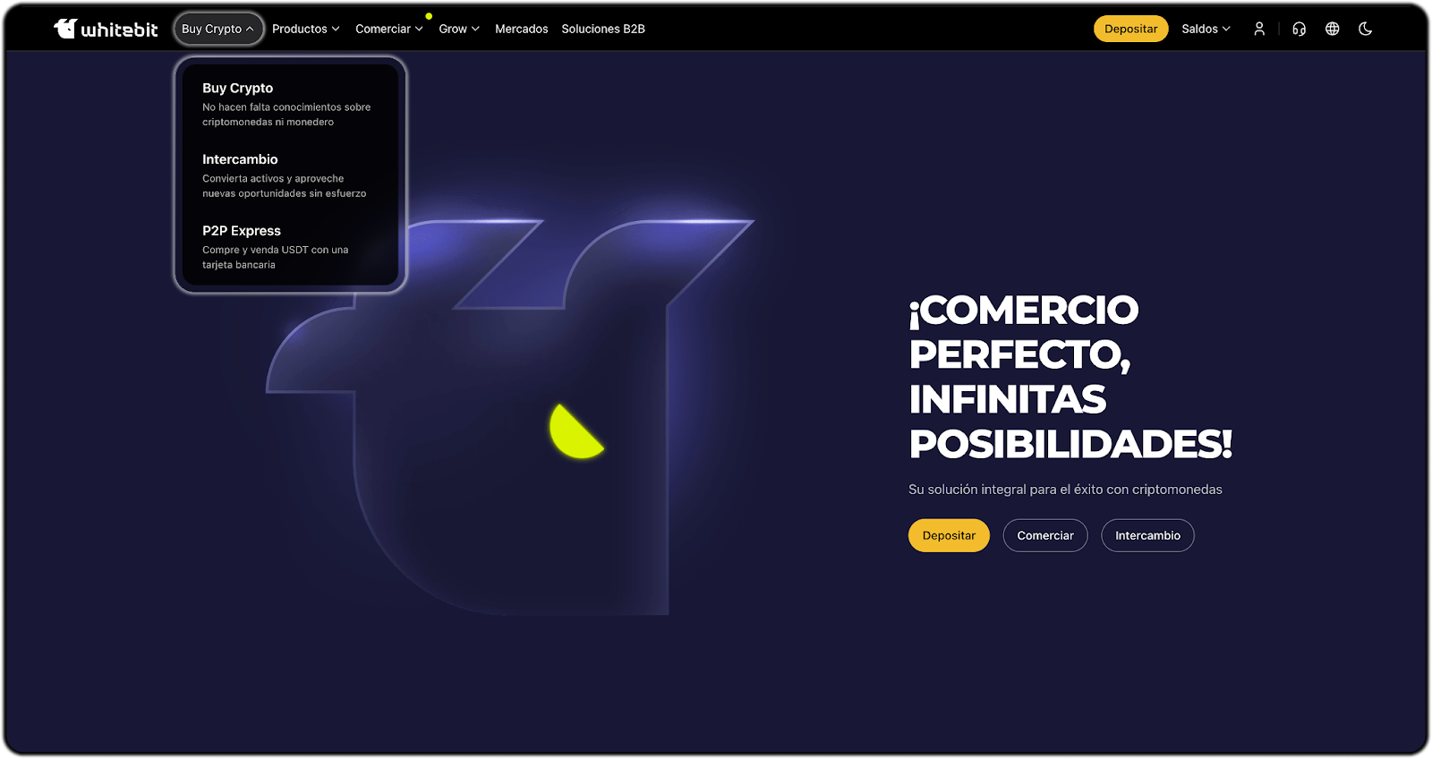 - Vaya a la sección “Buy Crypto” haciendo clic en el botón correspondiente en el encabezado (parte superior) del sitio;