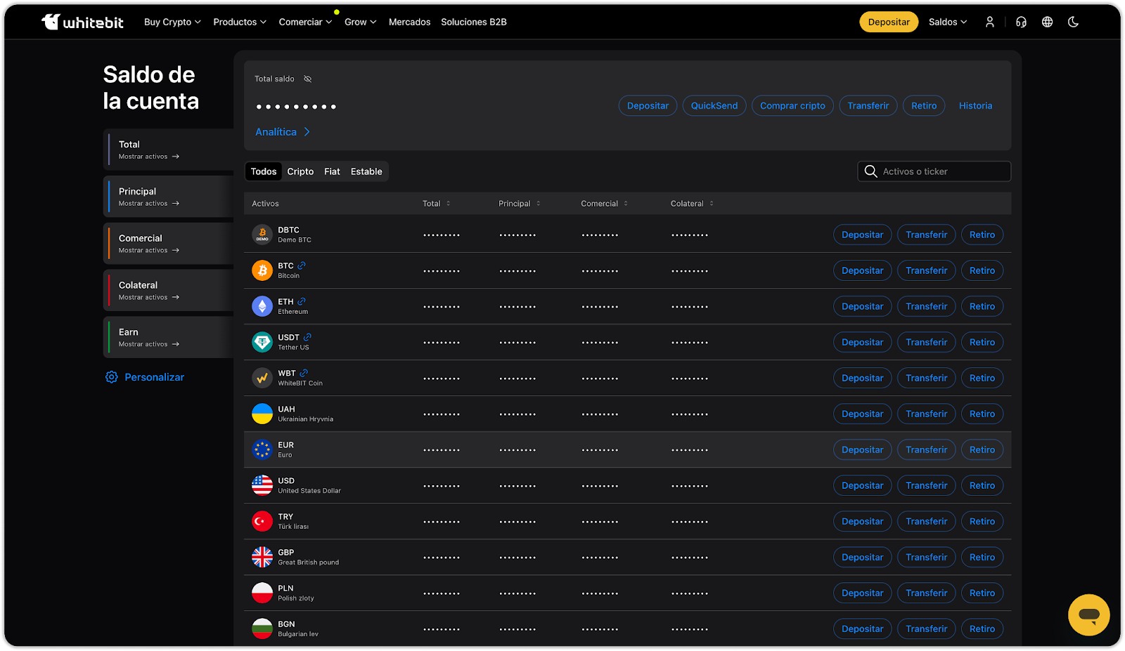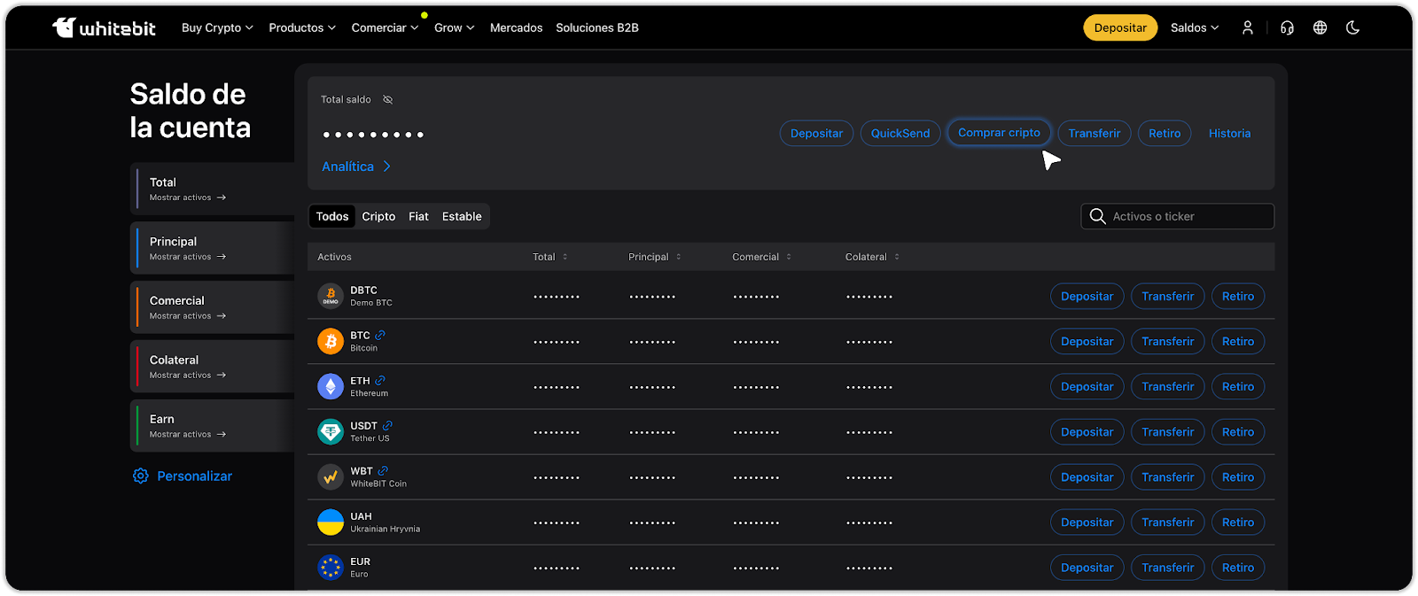 en la esquina inferior derecha de la pantalla (en la aplicación WhiteBIT, en la esquina superior derecha haga clic en