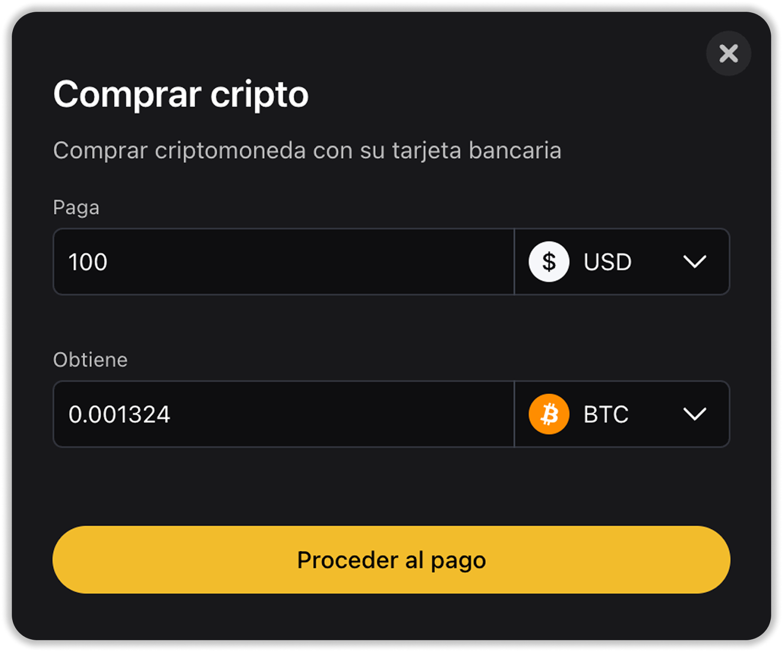 Tenga en cuenta: la función “Buy Crypto” está disponible para los usuarios con nivel de verificación básico, profesional y avanzado.