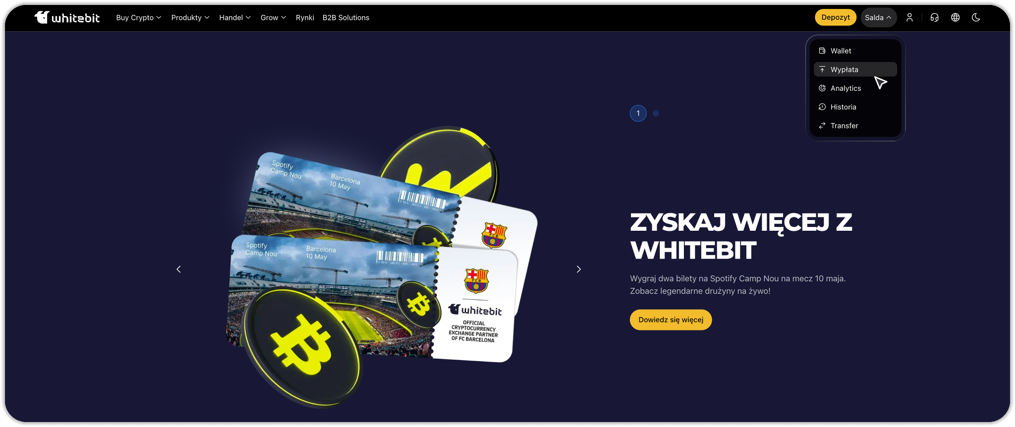 Będziesz musiał potwierdzić wypłatę za pomocą kodu, który zostanie wysłany na adres e-mail powiązany z твоїм kontem WhiteBIT, a także przez 2FA (jeśli masz włączoną Dwuetapową autoryzację lub Klucz dostępu).