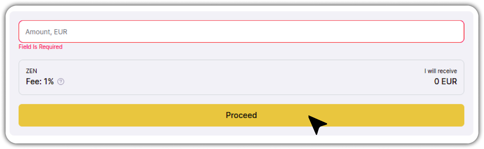 - Po tym kroku otworzy się okno wpłaty EUR w twojej przeglądarce. Wybierz EUR ZEN jako dostawcę płatności.
