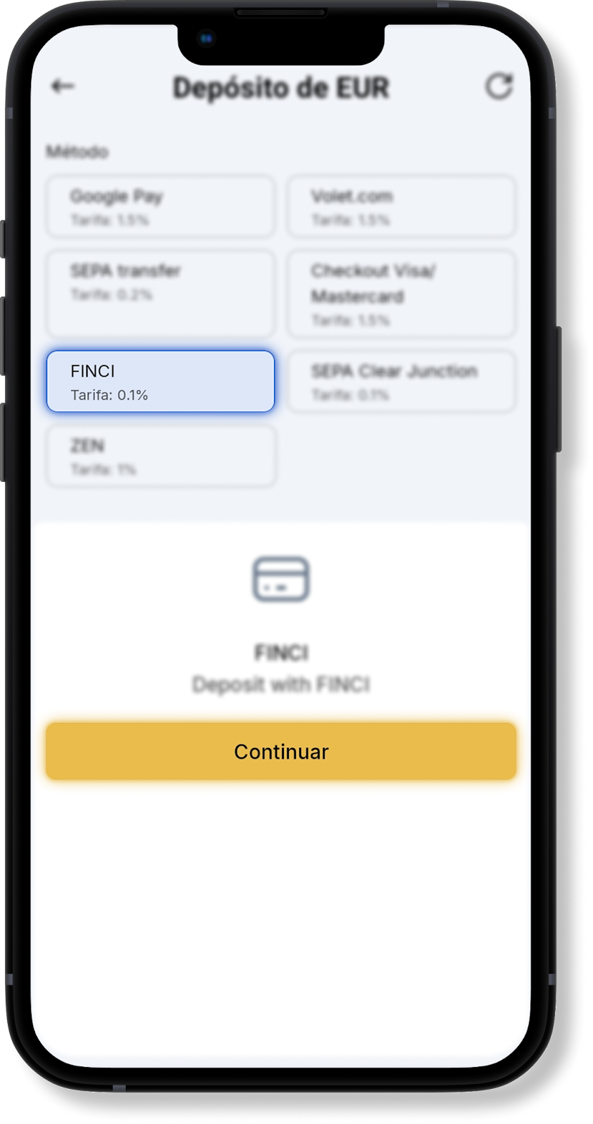 Cómo recargar saldo EUR SEPA FINCI en la aplicación: