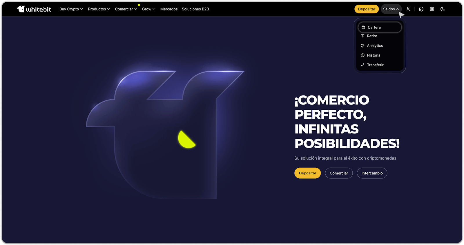 Para recargar su saldo a través de este proveedor en el sitio web de WhiteBIT, siga las instrucciones sencillas a continuación:
