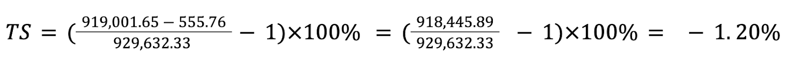 Wynik Handlowy (TS, %) to wskaźnik wydajności, który pozwala ocenić rentowność twoich transakcji. Porównuje on całkowitą kwotę uzyskaną ze sprzedaży aktywów (po odliczeniu prowizji) z kwotą wydaną na ich zakup. Lub odwrotnie, jeśli jest to pozycja krótka, najpierw sprzedajesz, a potem kupujesz. Pomaga to dokładnie określić rzeczywisty dochód z handlu bez uwzględniania dźwigni.