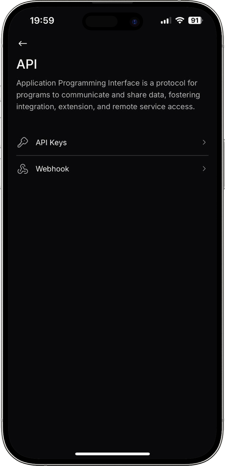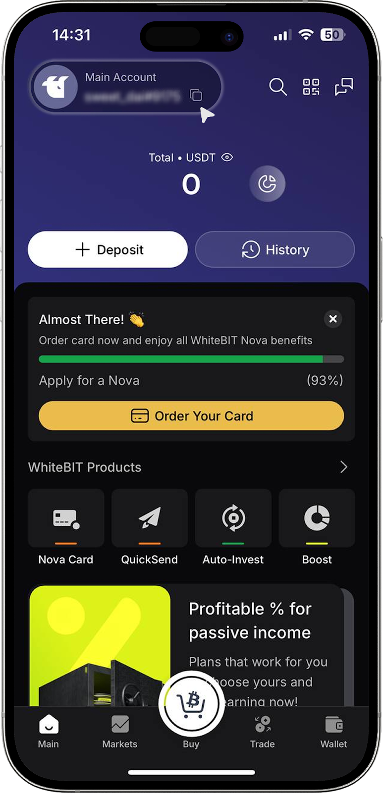 Klikając ten przycisk, możesz wylogować się ze swojego konta WhiteBIT w aplikacji mobilnej.
