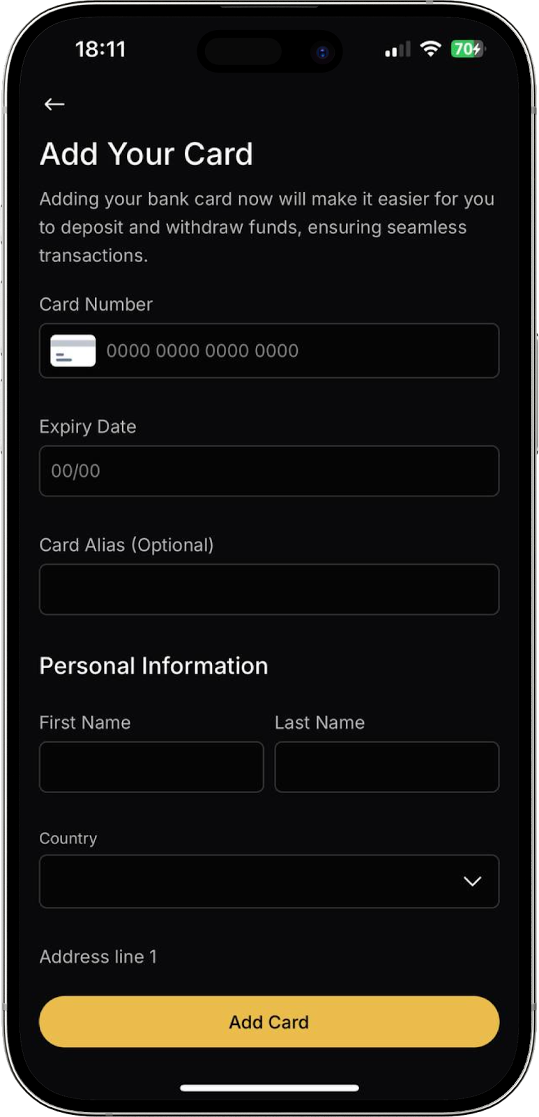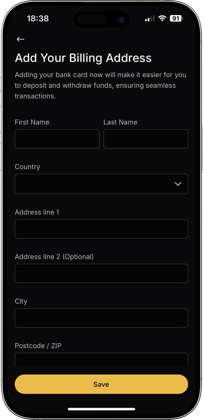 Możesz dodać dane płatnicze, aby łatwiej i szybciej zasilać konto WhiteBIT. W tym celu podaj odpowiednie informacje w formularzu.