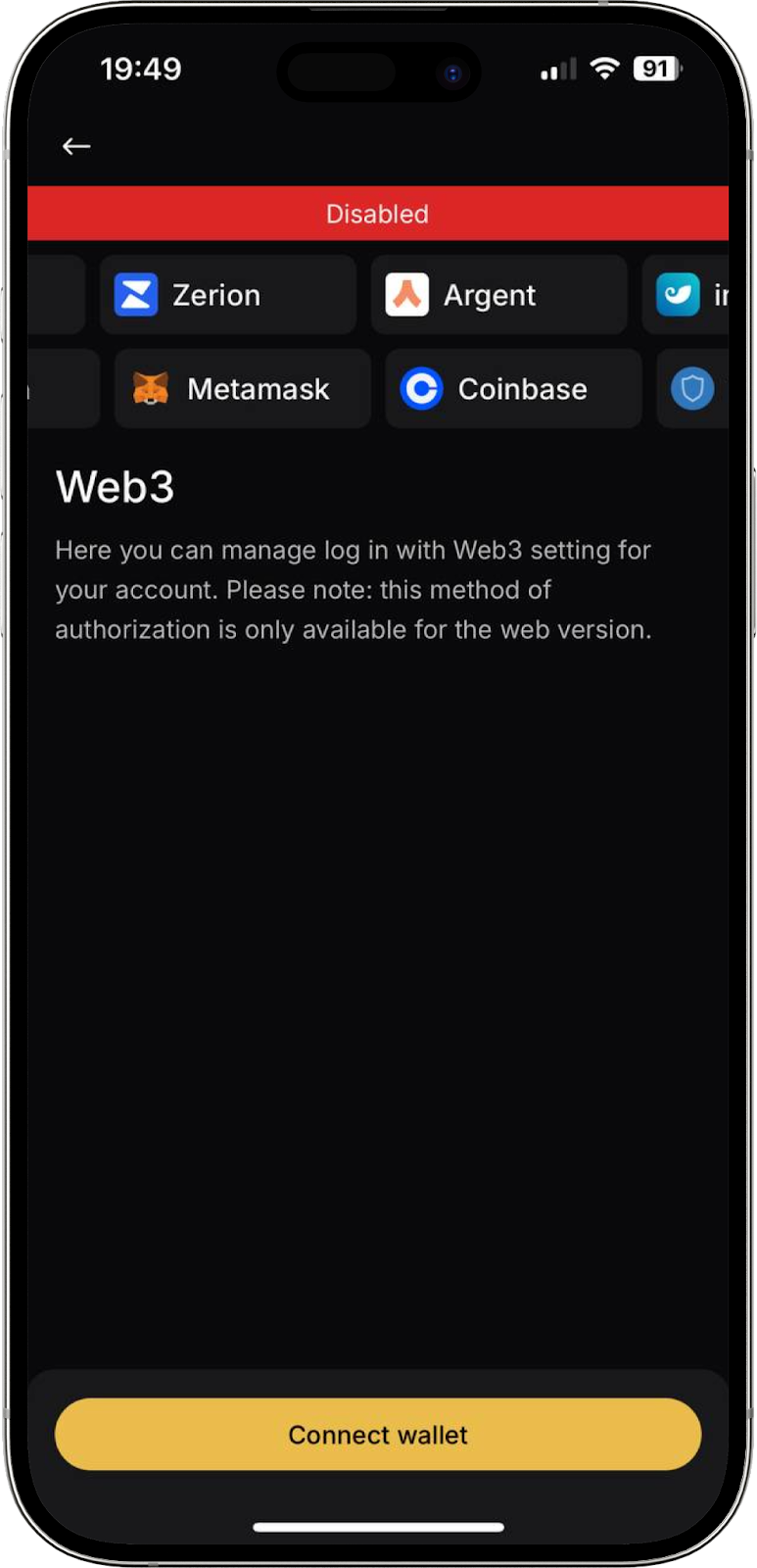 Możesz także logować się za pomocą portfela Web3. Aby skorzystać z tej funkcji, zainstaluj rozszerzenie portfela w przeglądarce i włącz 2FA. W sekcji „Web3” znajdź swój portfel na liście. Jeśli go tam nie ma, kliknij „Mam szczęście”, aby system wykrył rozszerzenie w przeglądarce.