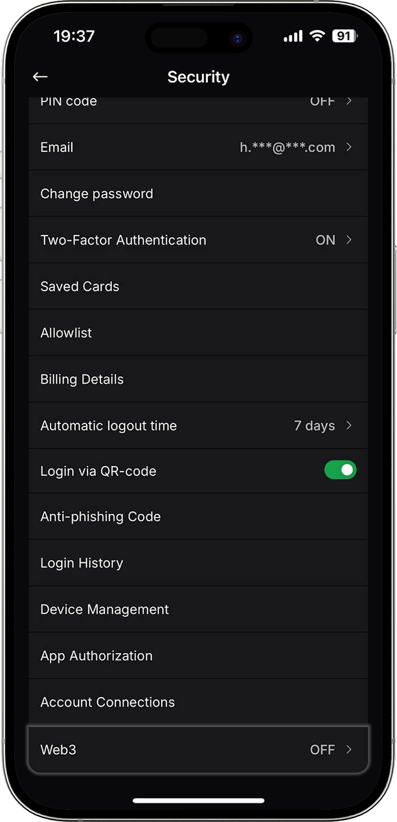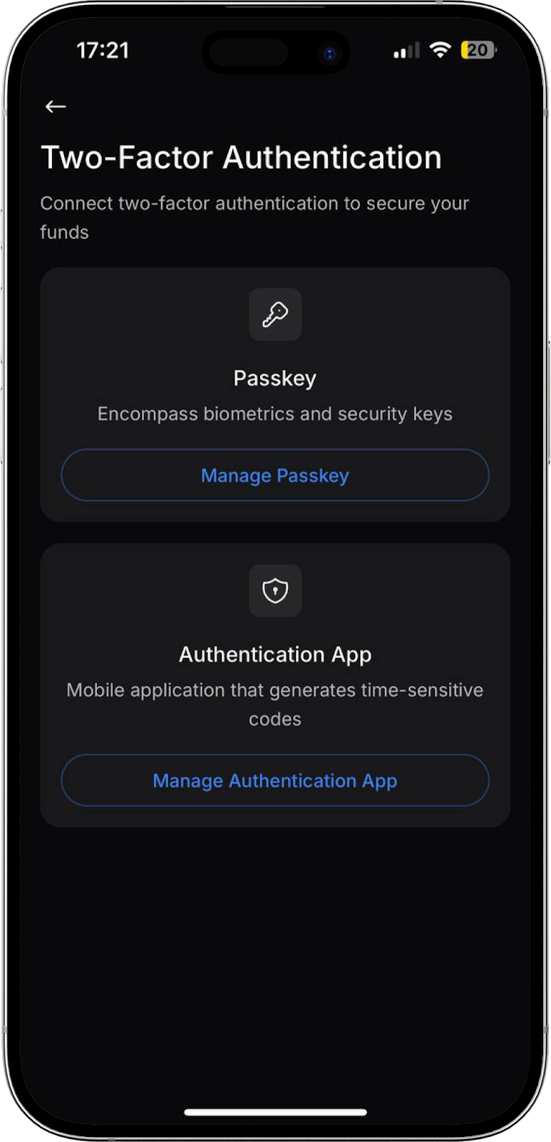 Dwuskładnikowa autoryzacja (2FA) — uwierzytelnianie dwuskładnikowe, czyli potwierdzenie tożsamości w celu uzyskania dostępu do konta, które zapewnia dodatkowy poziom ochrony. W tej sekcji możesz zeskanować kod QR i aktywować 2FA oraz Klucz dostępu.
