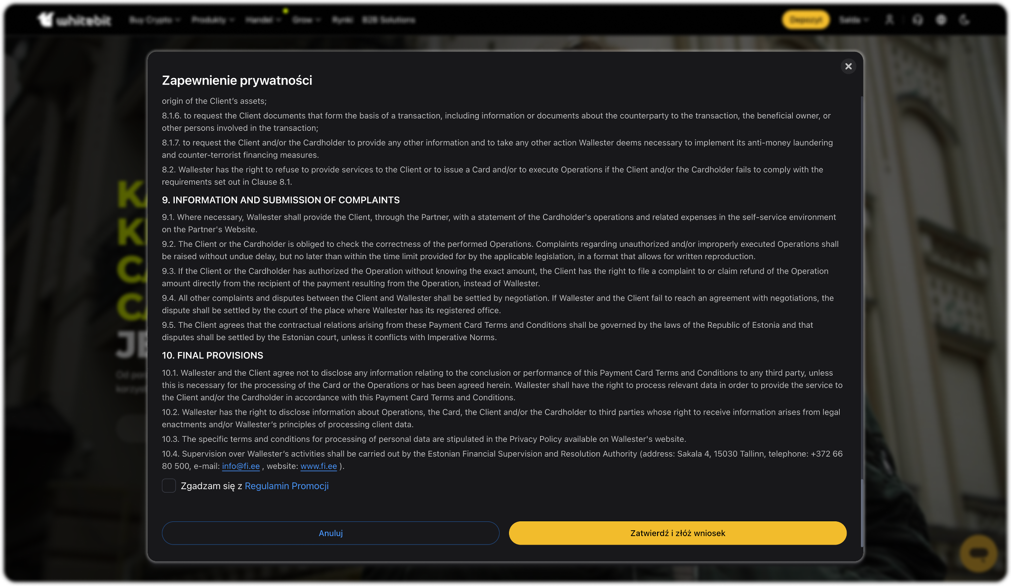 Jak zamówić kartę Nóva na stronie WhiteBIT