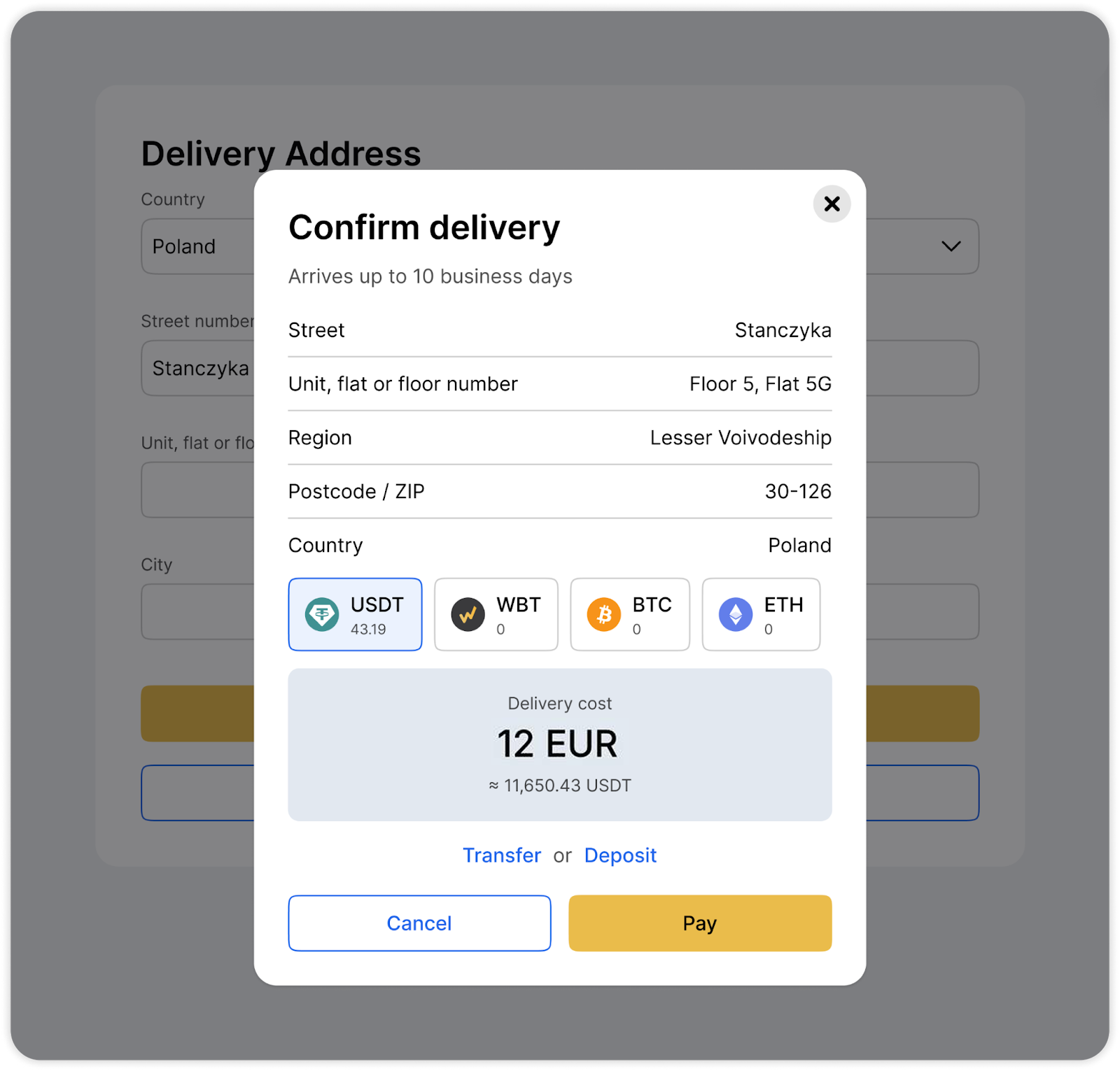 1. Potwierdź dostawę i kliknij przycisk „Zapłać”.