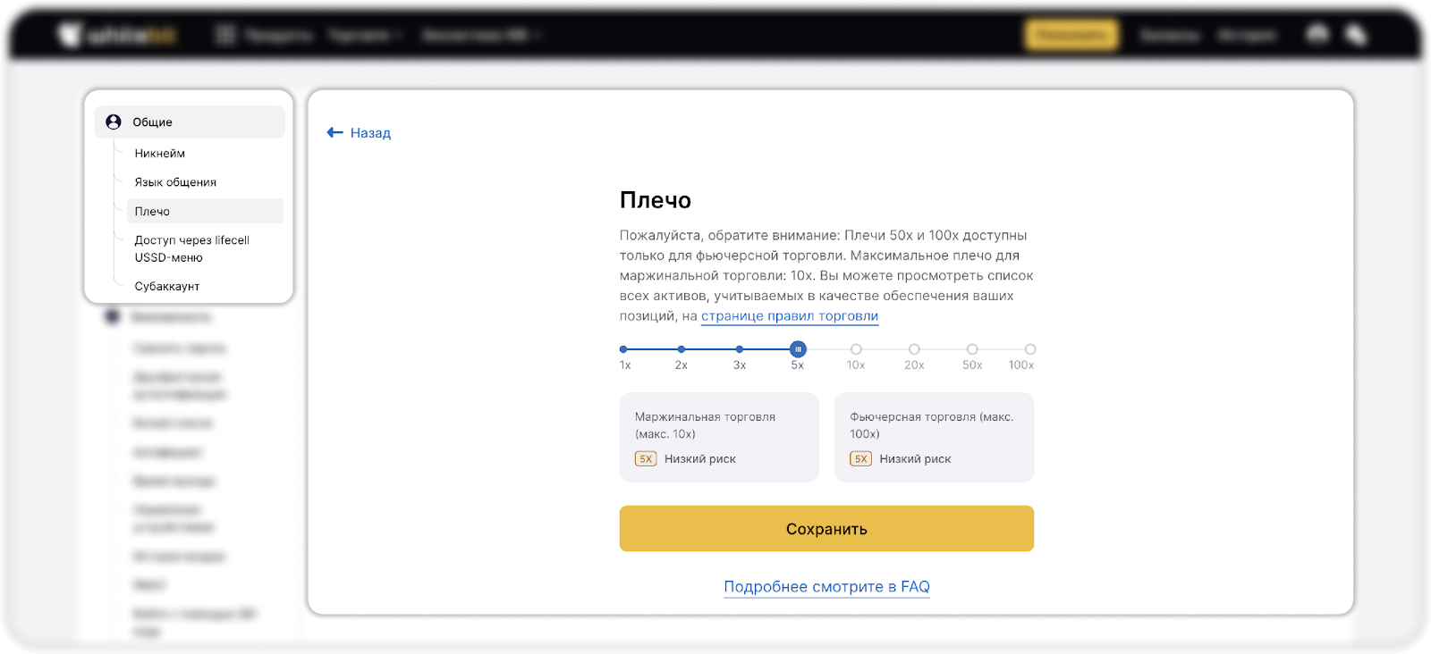 Обратите внимание: Изменение размера плеча повлияет на все ваши позиции на маржинальной и фьючерсной торговле.
