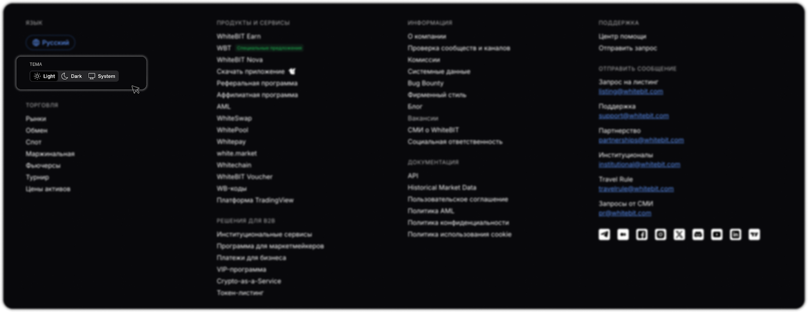 - Написать на электронную почту службы поддержки: support@whitebit.com;