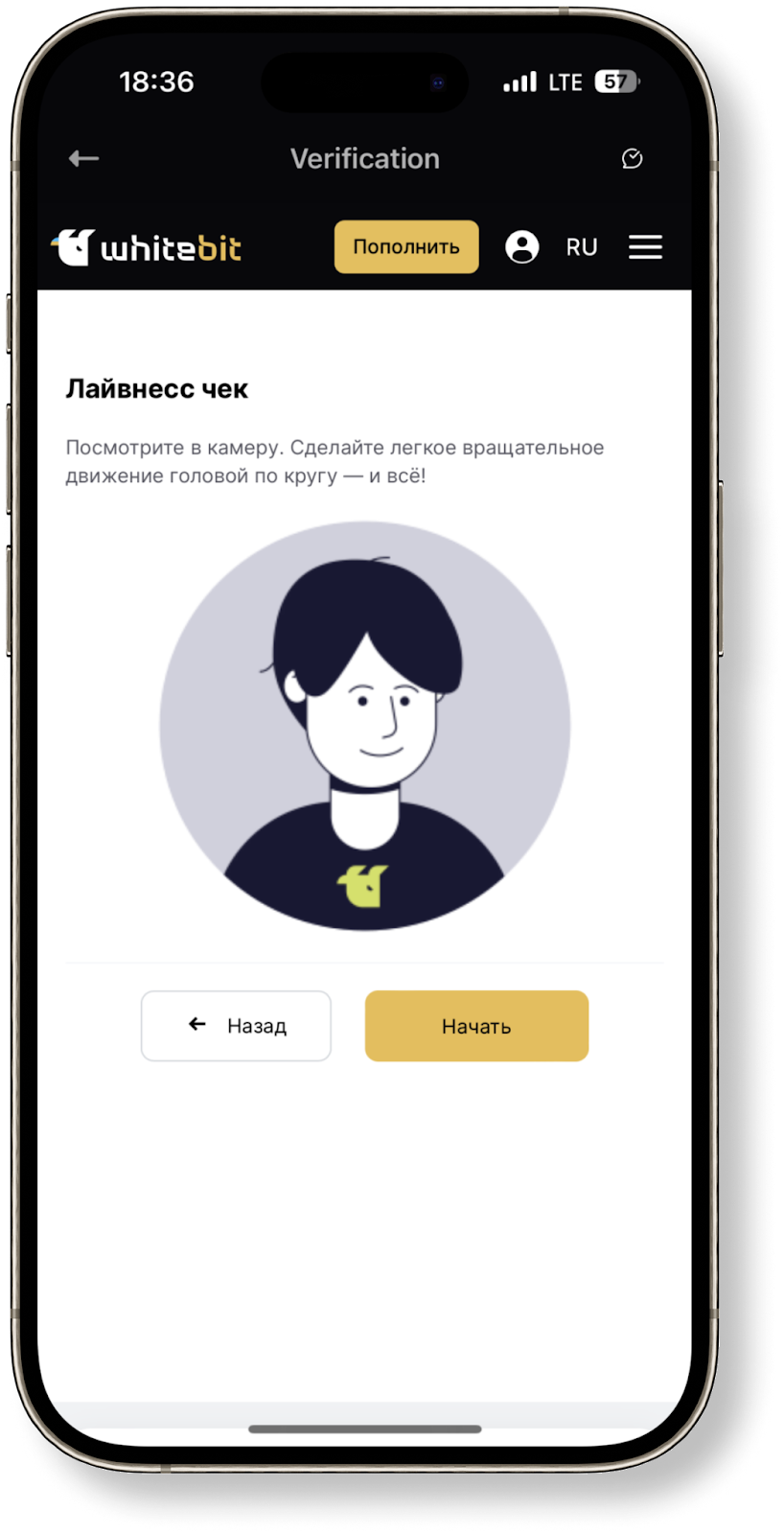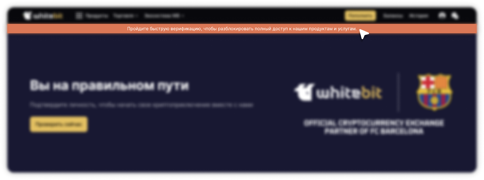 Прежде чем пройти проверку личности, вы можете посмотреть как работают наши торговые инструменты, используя Demo-токены. Однако подтверждение личности необходимо для осуществления любых депозитов и выводов средств, создания и активации WhiteBIT-кодов и использования функции "Купить крипту".