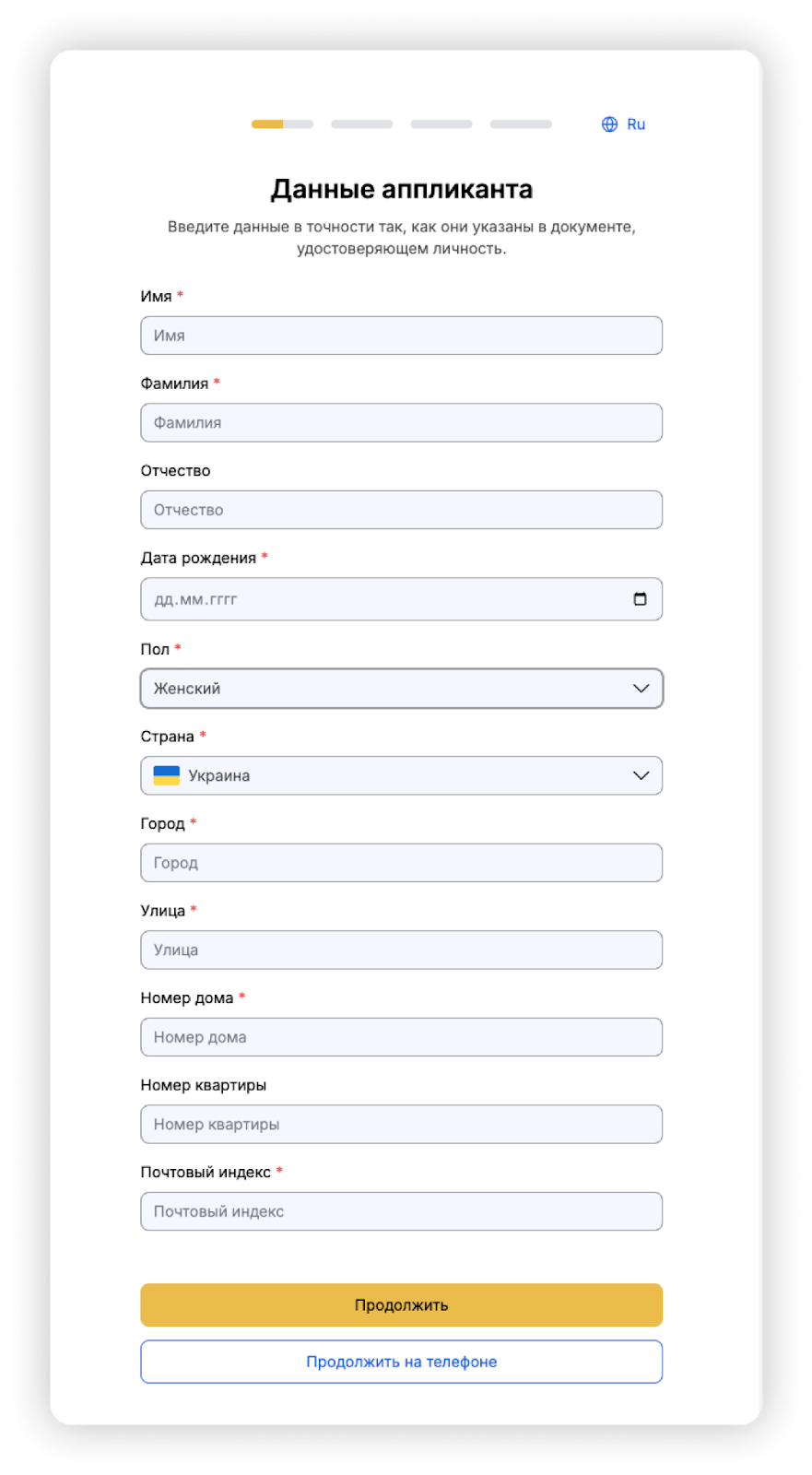 - Заполните анкету (обратите внимание, что обязательные поля, отмеченные звездочкой, должны быть заполнены);