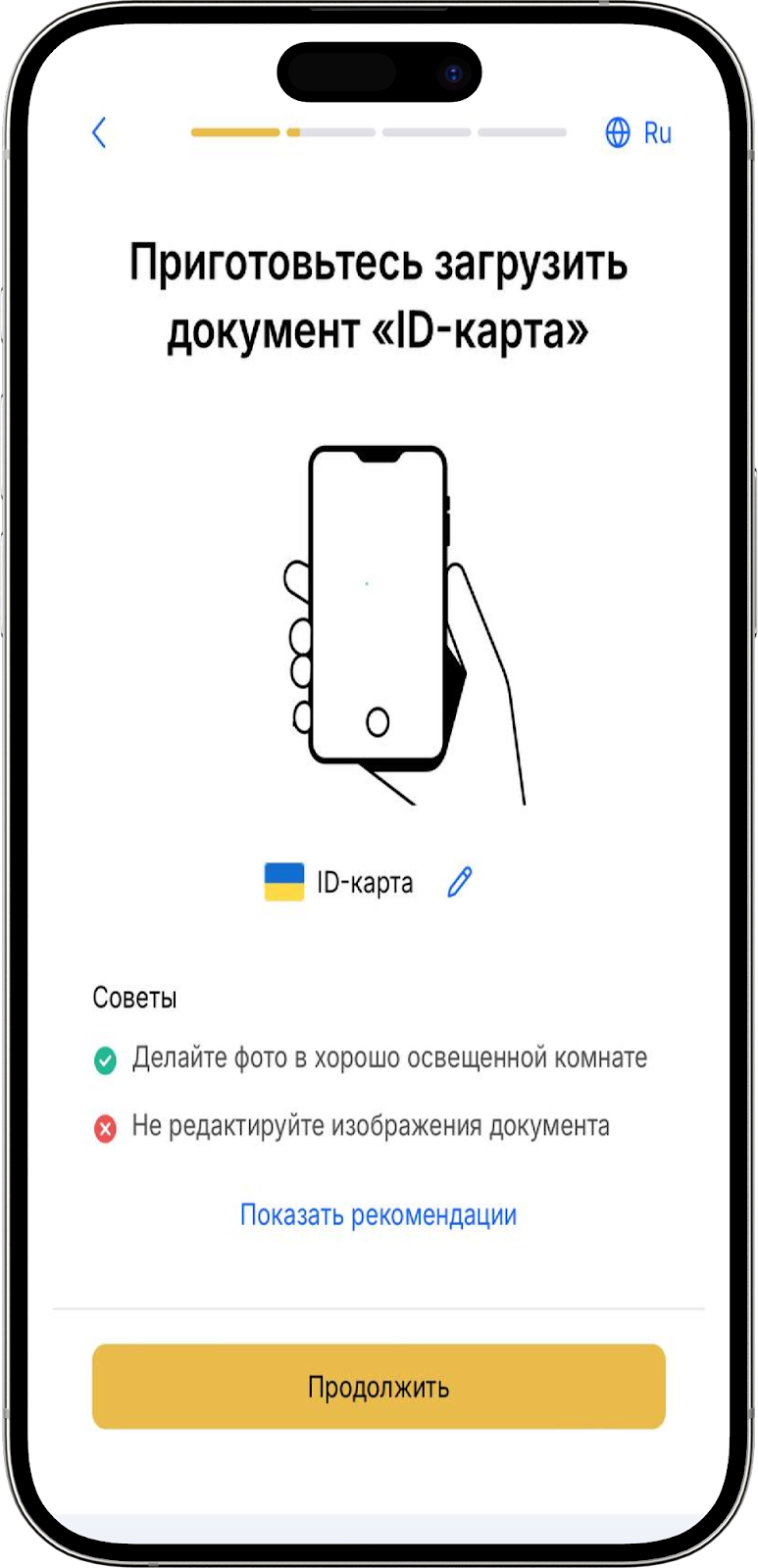 - Сфотографируйте один из следующих документов: ID-карты, паспорта или вида на жительство;