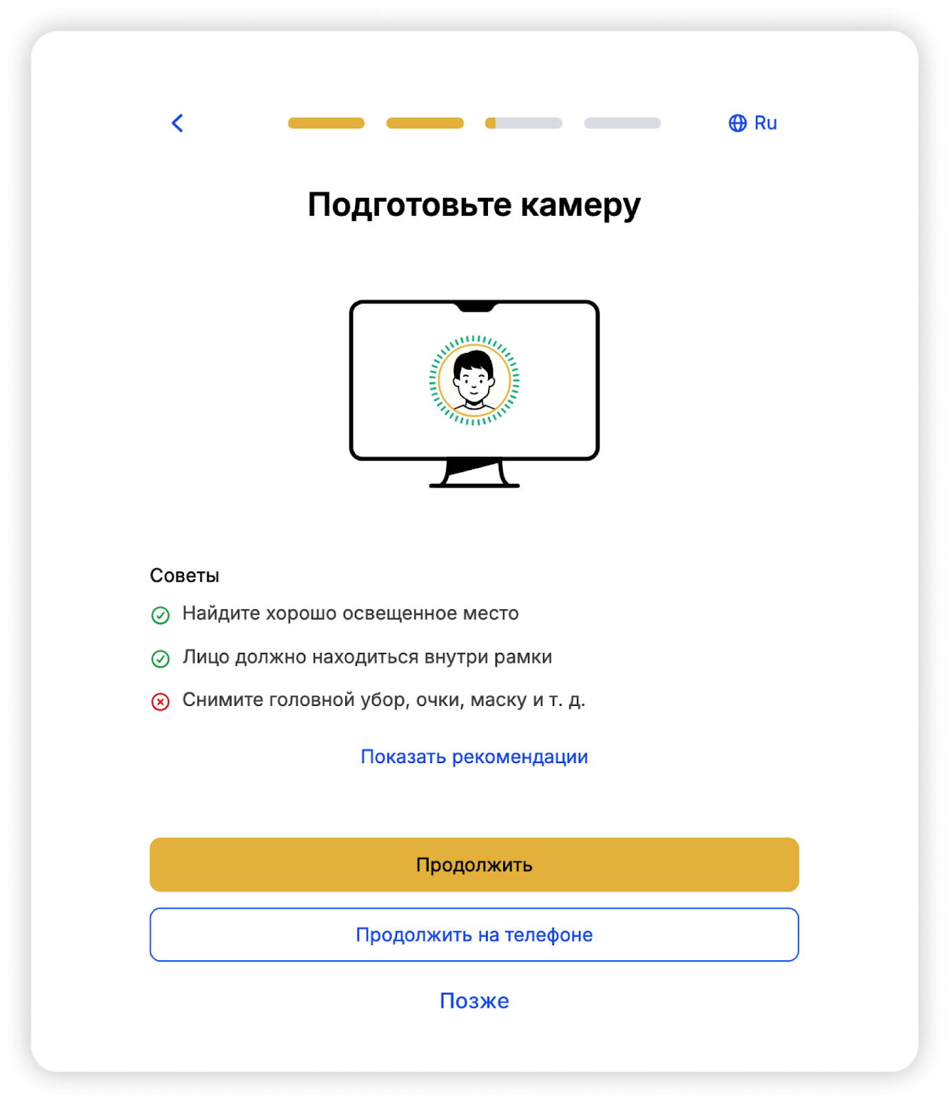 - Пройдите процедуру сканирования лица в соответствии с указанными требованиями.